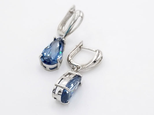 Pear cut London blue topaz dangling earring in 18k WG, gift for her, gift for mom