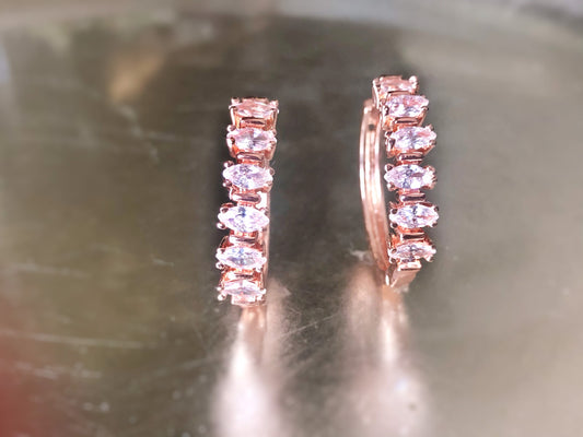 Marquis white sapphire 25mm hoop earrings in 18K rose gold, gift for her, gift for mom