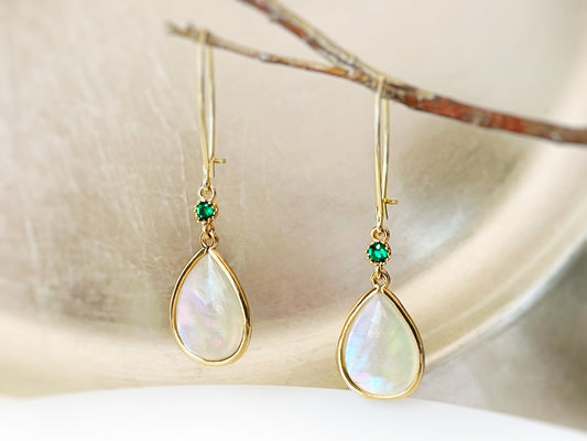 Emerald teardrop dangle earrings, May birthstones, emerald green gemstone earrings, gift for her, gift for mom, bridal earrings