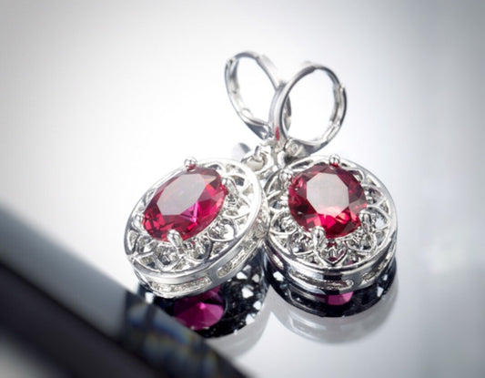 Large ruby dangling earring in 18k white gold, gift for her, gift for mom, July birthday gift