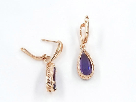 Pear shaped amethyst dangling earring in 14K rose gold, purple gemstone teardrop earrings, gift for her, gift for mom, February birthstones