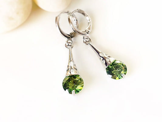 Peridot filigree dangle earrings, olive green gemstone dangles, gift for her, gift for daughter, August birthstone