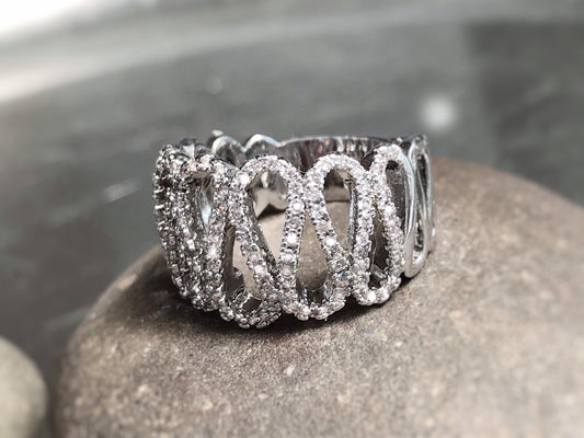 pavé statement ring in 18k white gold, cocktail ring, gift for her, gift for mom