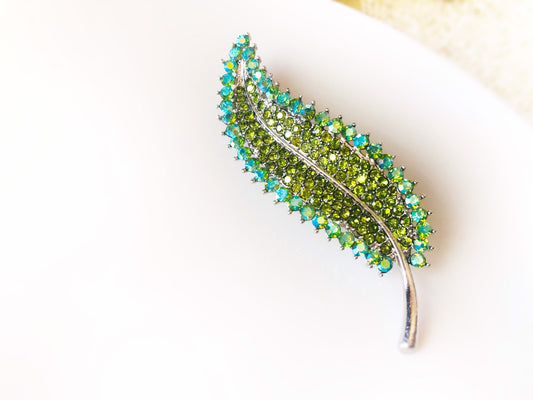 Large green leaf Fancy crystal brooch pendant, peridot green crystal brooch in 18K white gold plated, gift for mom, gift for her