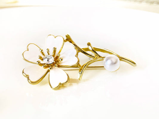 Pearl crystal flower brooch in 14K gold plated. Gold flower brooch pin, wedding bouquet brooch, gift for her, gift for mom