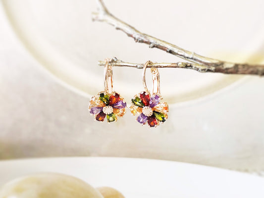 Multicolored daisy earring in 14K rose gold, rainbow gemstone flower earrings, gift for mom, gift for her