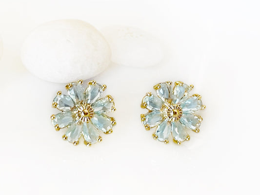 Aquamarine flower stud earrings 925 silver post, light blue gemstone daisy flower stud earring, March birthstone, gift for mom, gift for her