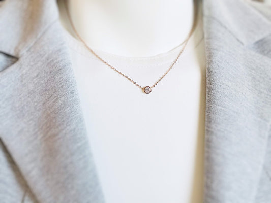 White sapphire solitaire necklace in 18K rose gold, bezel solitaire dainty necklace, gift for her, gift for Mother’s Day