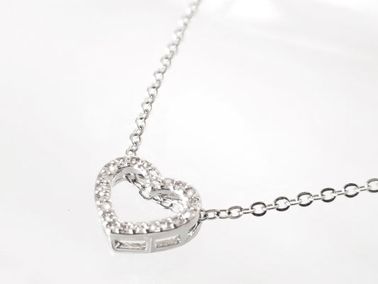 White Sapphire Small Heart Pendant Necklace in 18K White Gold Fillled, Dainty Necklace, Gift for Women, Gift for Mom