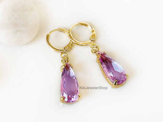 Small Teardrop Lilac Amethyst Dangle Earrings