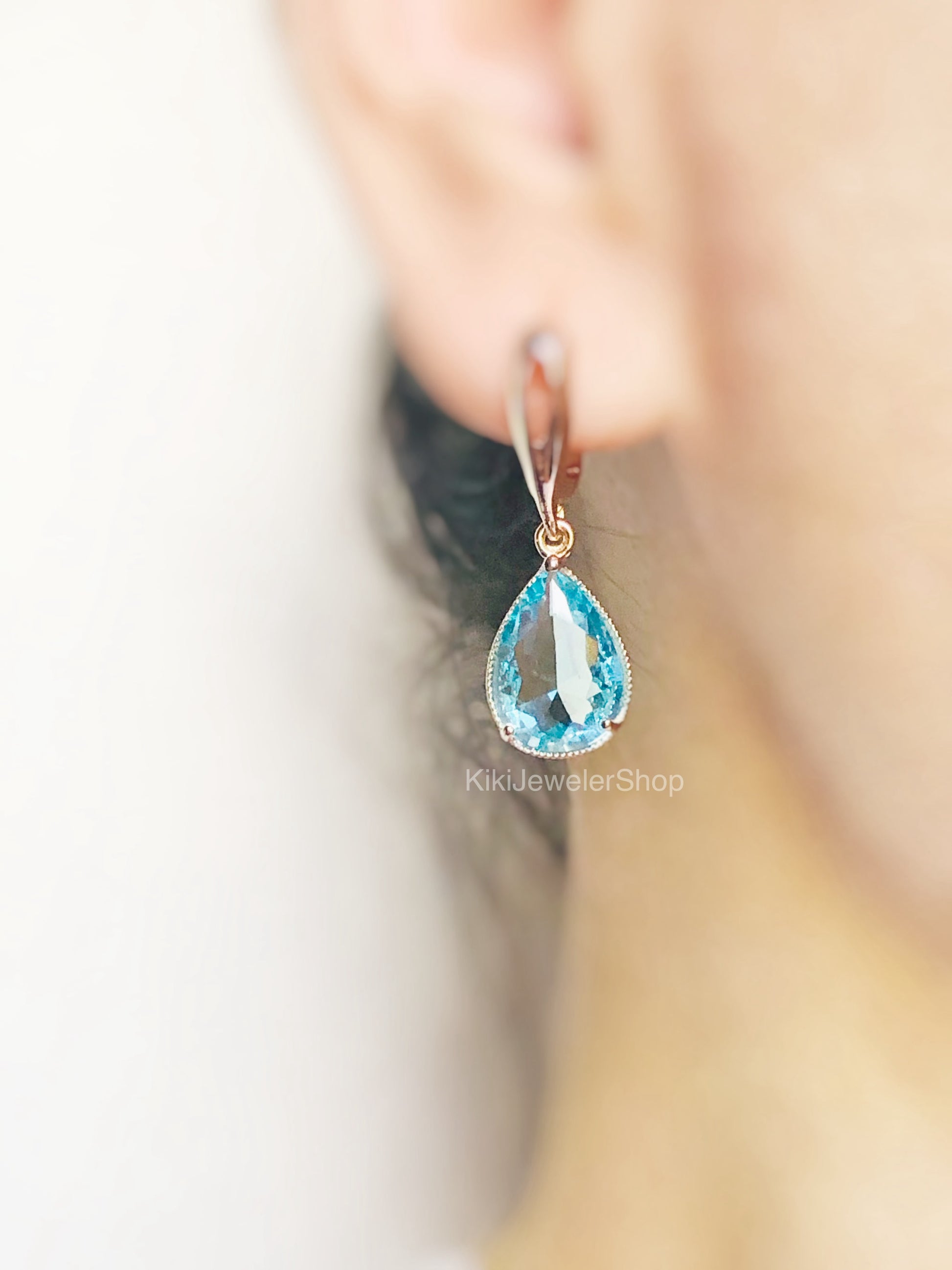 Large teardrop amethyst dangle earrings are available in 14K gold, 14K rose gold, or 18K white gold over brass, featuring secure lever back closures. The deep purple created gemstones are expertly faceted to enhance their brilliance. These earrings transition seamlessly from daytime wear to evening sophistication and serve as an ideal gift for individuals born in February or as part of a bridal party.