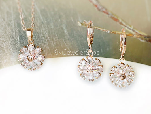 White Sapphire Daisy Flower Jewelry Set Gold Filled