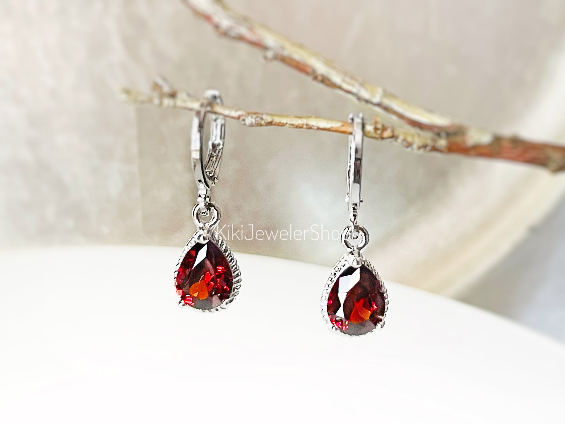 Boucles d'oreilles pendantes en grenat en forme de larme, petites boucles d'oreilles serties d'une pierre rouge, cadeau pour elle, cadeau pour une fille, pierre de naissance de janvier