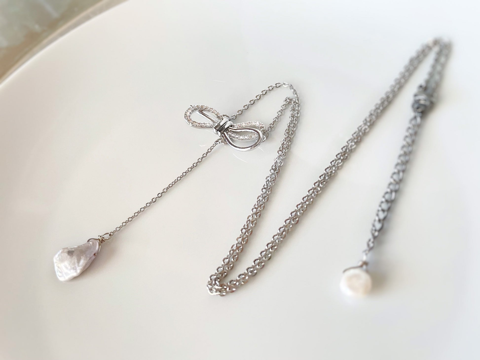 13x9mm genuine baroque pearl* lariat dropped from a beautiful created white sapphire pave butterfly bow set in dainty 18K rose gold filled chain or 18K white gold filled. This necklace is made of the highest quality materials. Perfect Valentine’s Day gift for someone special, or self love!