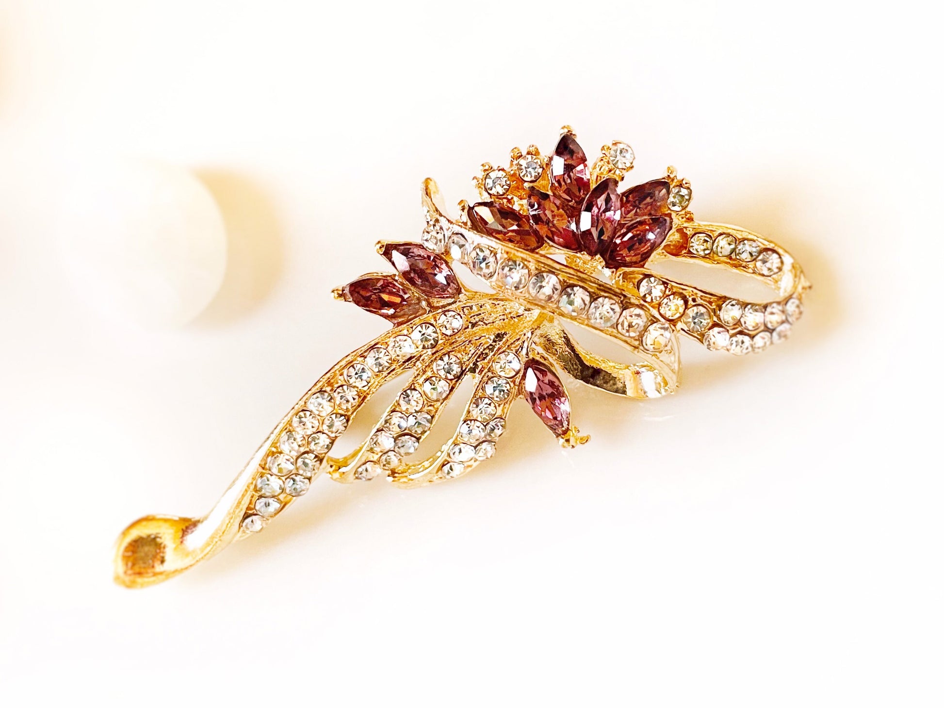 Blue sapphire crystal flower bouquet brooch handcrafted in 14K gold plating or 18K white gold plating. This brooch features smooth, graceful lines and beautiful colors that compliment any wardrobe