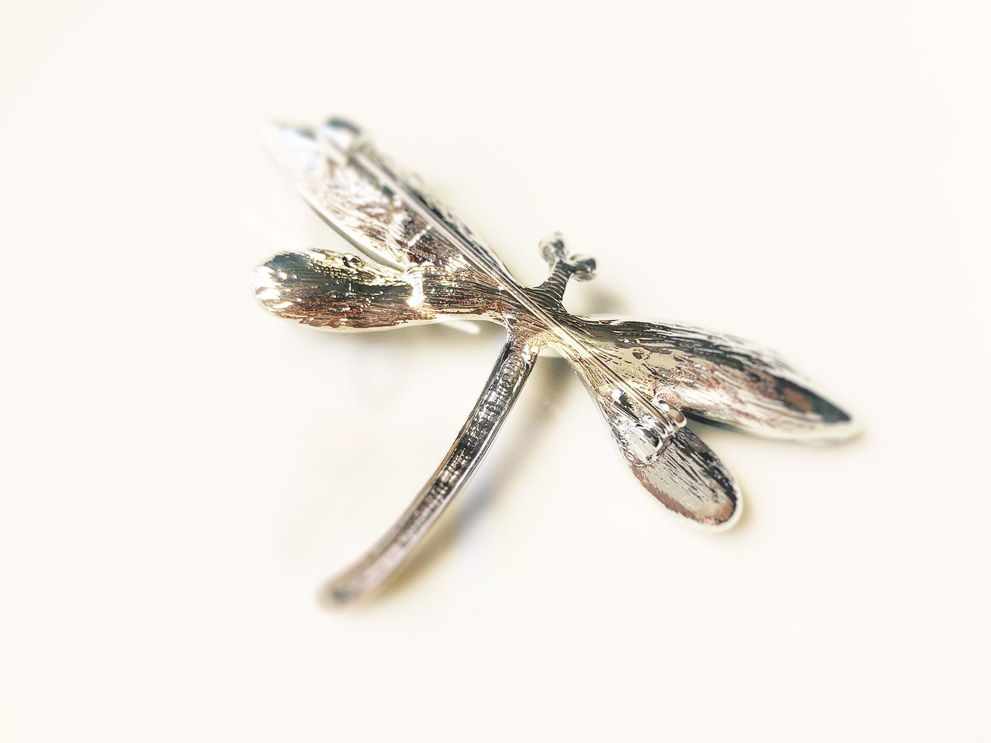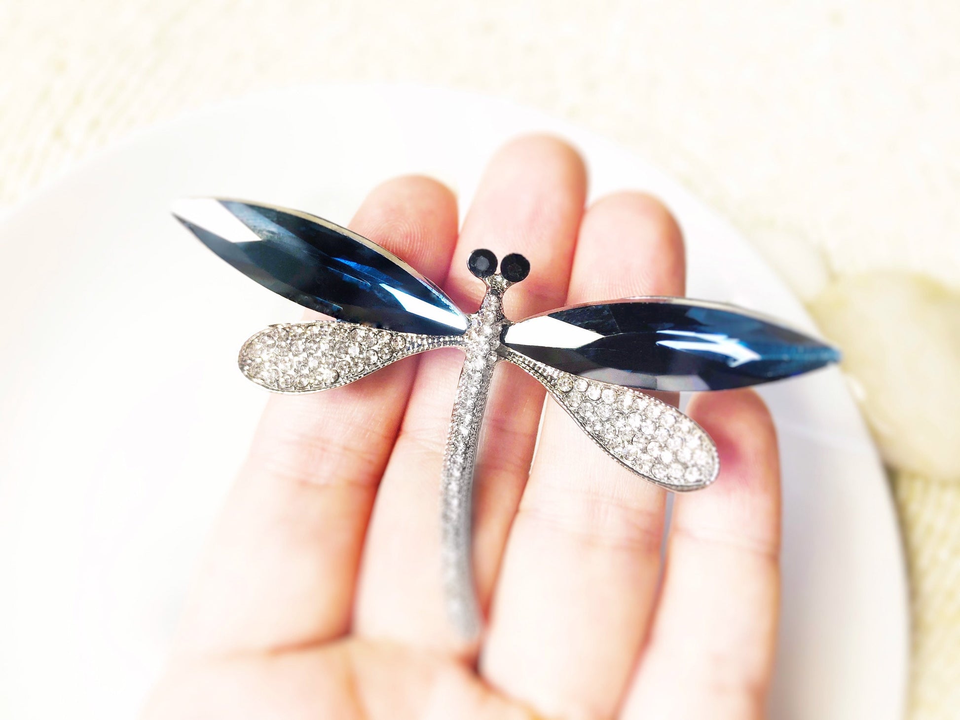 Blue sapphire dragonfly brooch, large dragonfly crystal brooch pin in 18K white gold, gift for mom, gift for her