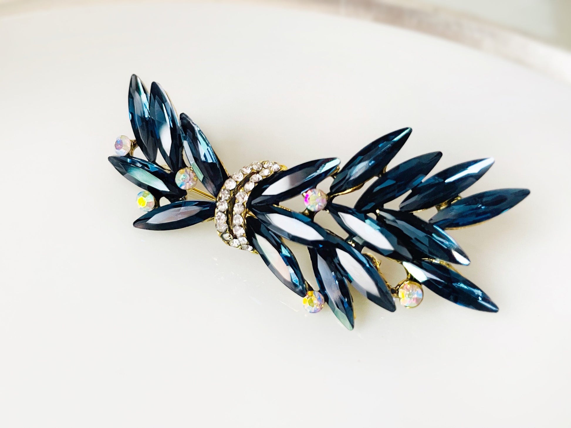 Blue sapphire fancy crystal brooch, dark blue statement crystal brooch pin, wedding brooch, gift for mom, gift for her