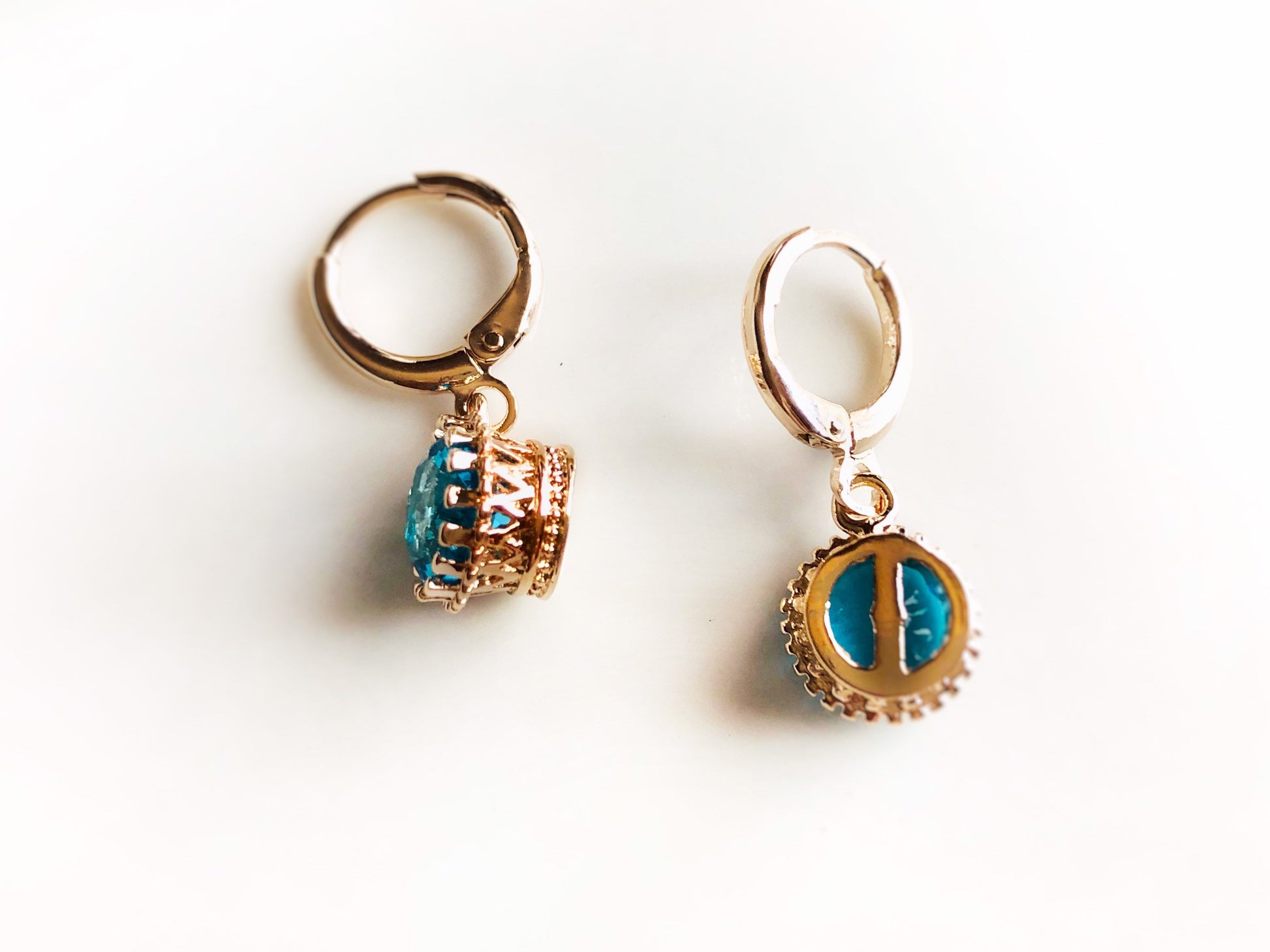 Simple and elegant, these solitaire created blue topaz earrings showcase a graceful drop from small huggies. The brilliant cut 8mm round stones are secured in intricate bezel settings and exude their beautiful medium blue. Set in 14K rose gold or 18K white gold over brass, lead and nickel free