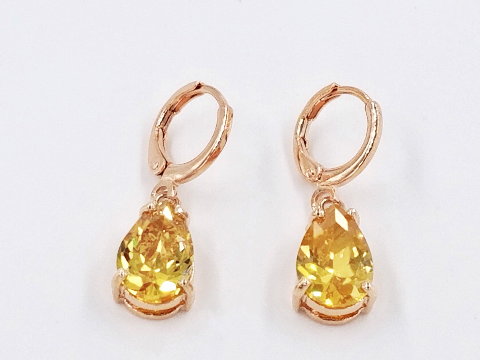 Citrine drop earrings are beautifully rafted in warm 14K rose gold or 18K white gold plated. Each earring dangle features a 12.0 x 8.0mm faceted teardrop created citrine gemstone. Lead and nickel free.