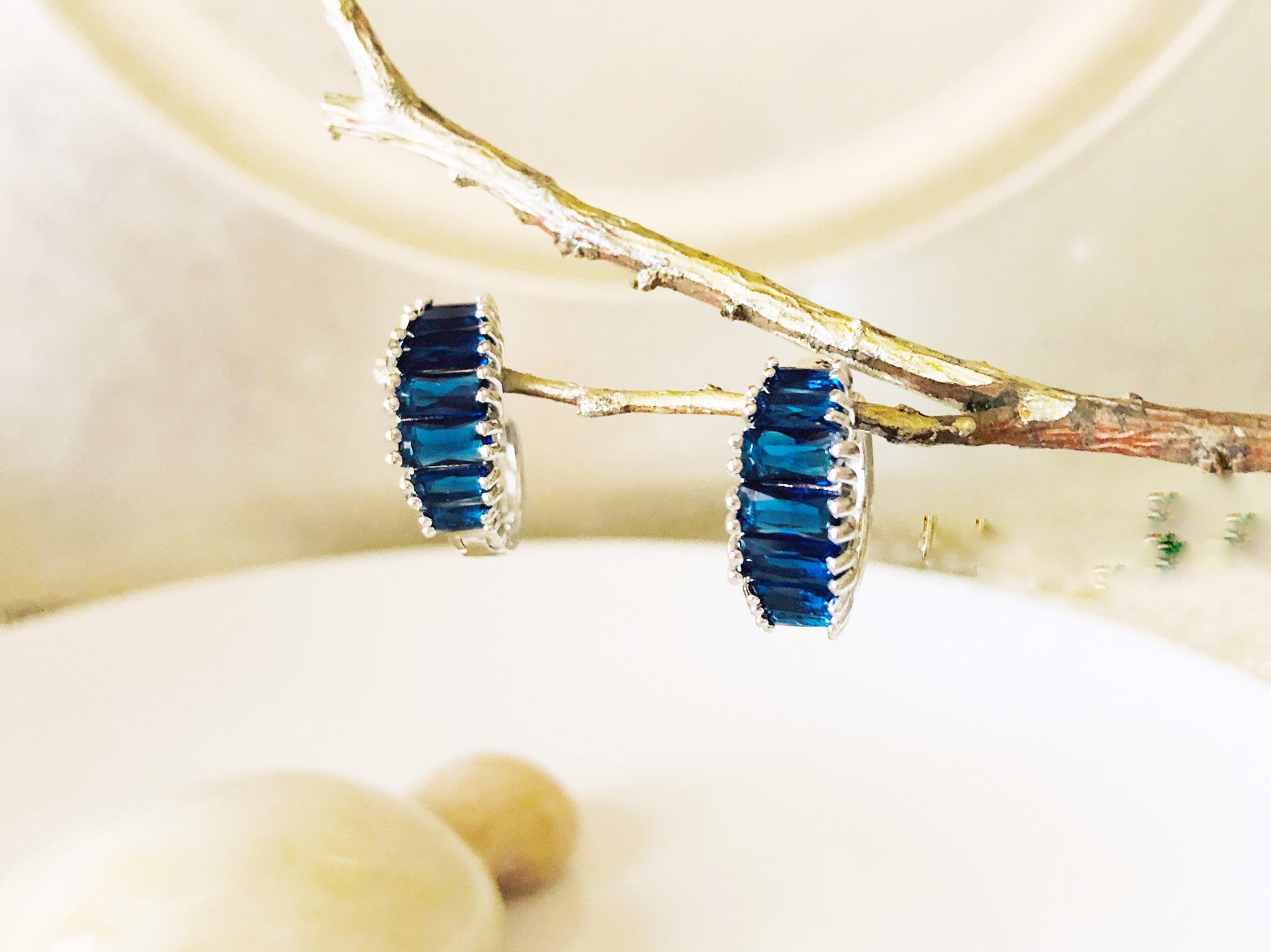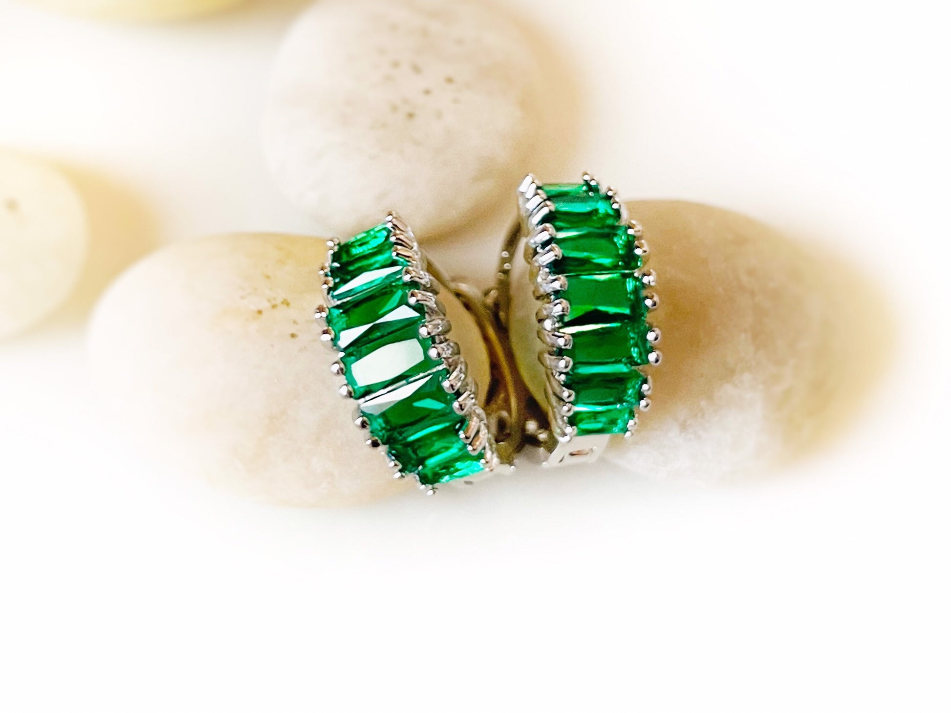 7 baguette created emerald gemstone casted in 18k white gold over brass hoop earrings that instantly elevate your everyday style.