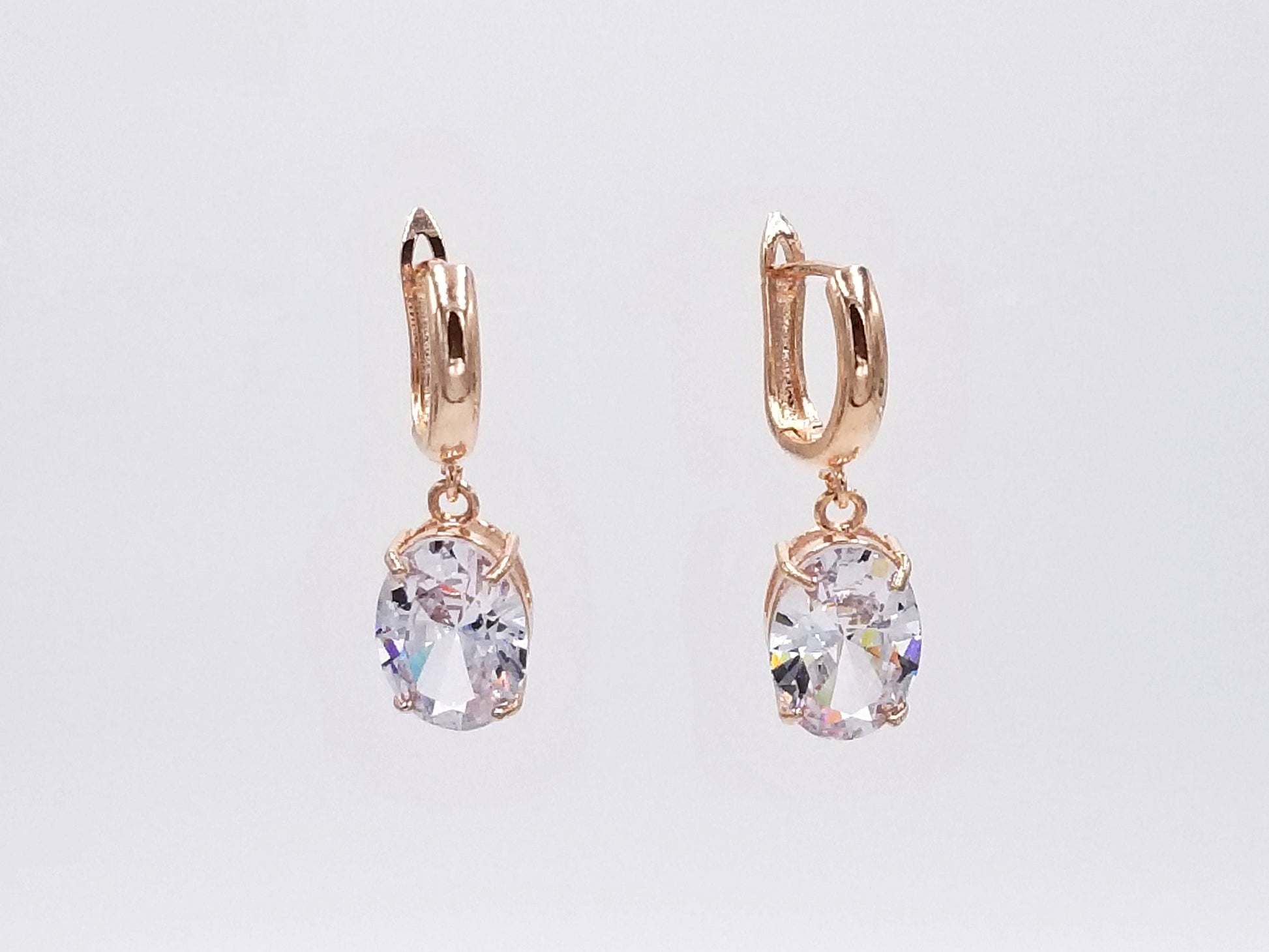 Large cushion cut white sapphire dangling earring in 14K rose gold, gift for her, gift for mom, bridal earrings