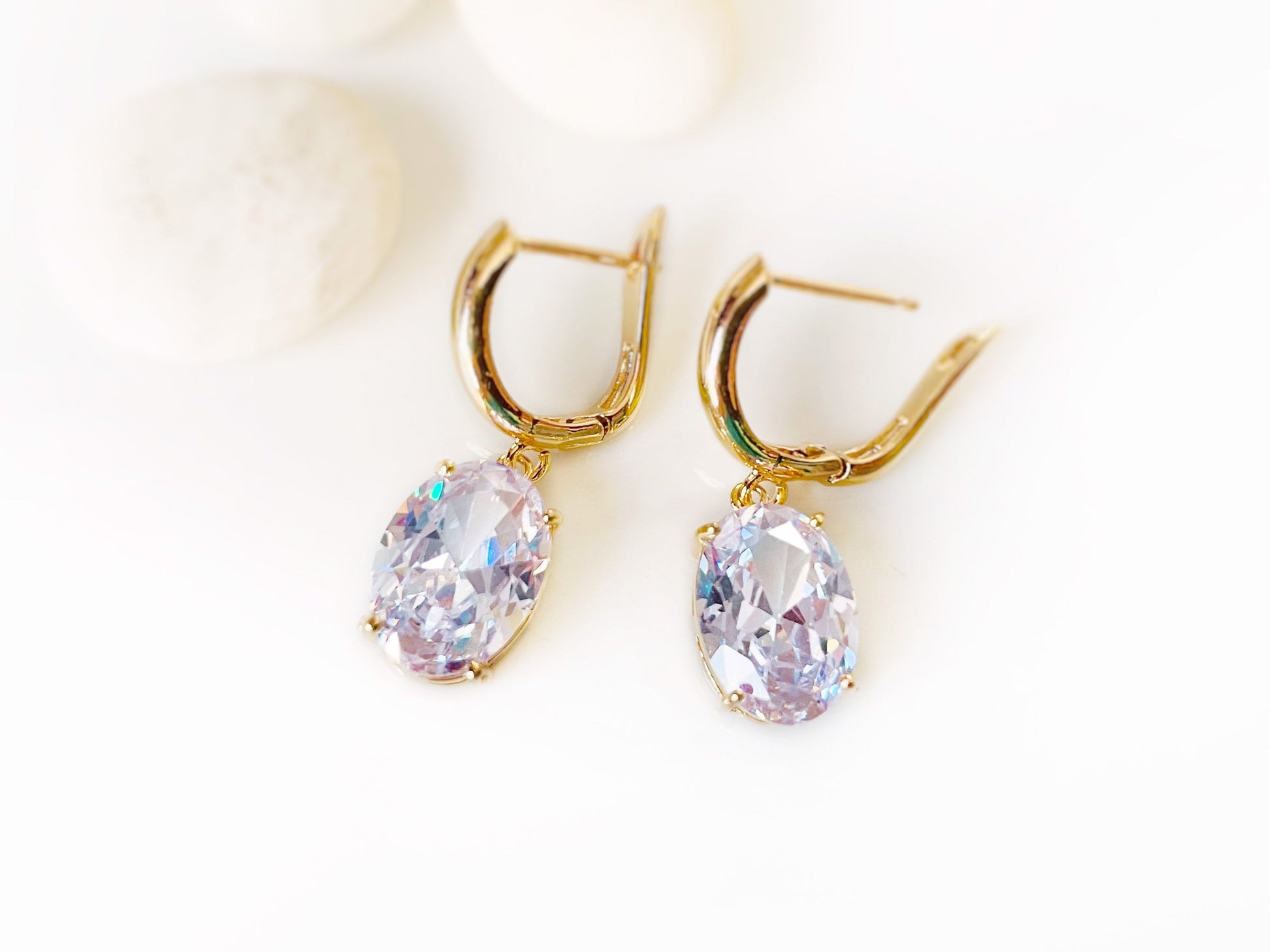 Large cushion cut white sapphire dangling earring in 18K white gold, gift for her, gift for mom, bridal earrings, April birthstone
