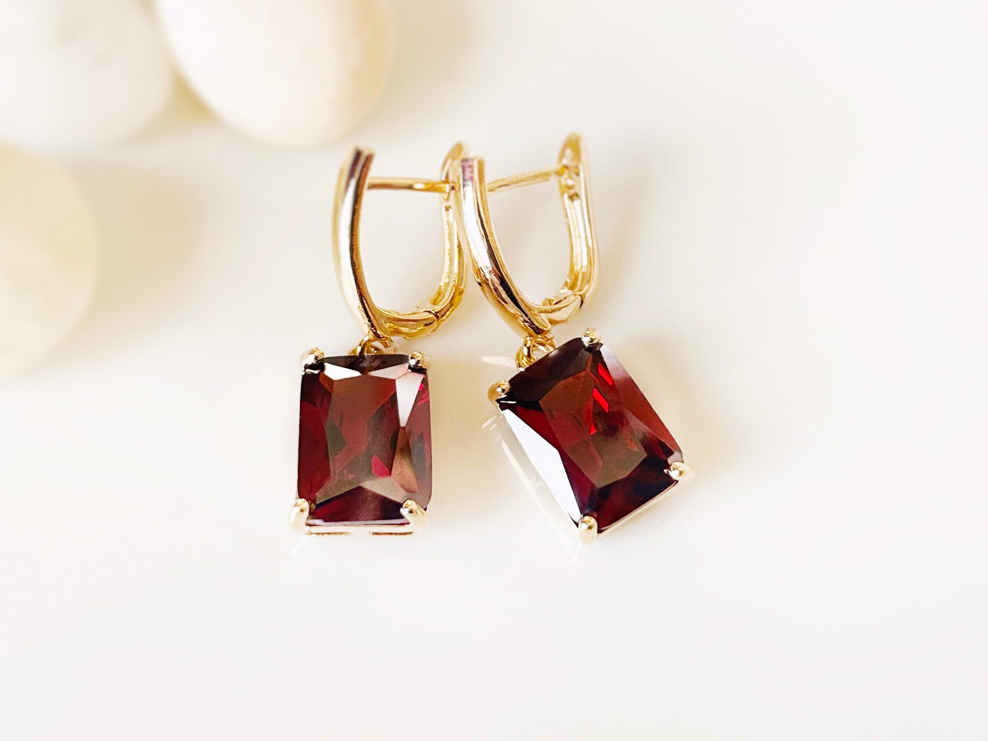 Large emerald cut garnet dangle earrings, January birthstone, red gemstone drop earrings, gift for mom, gift for her