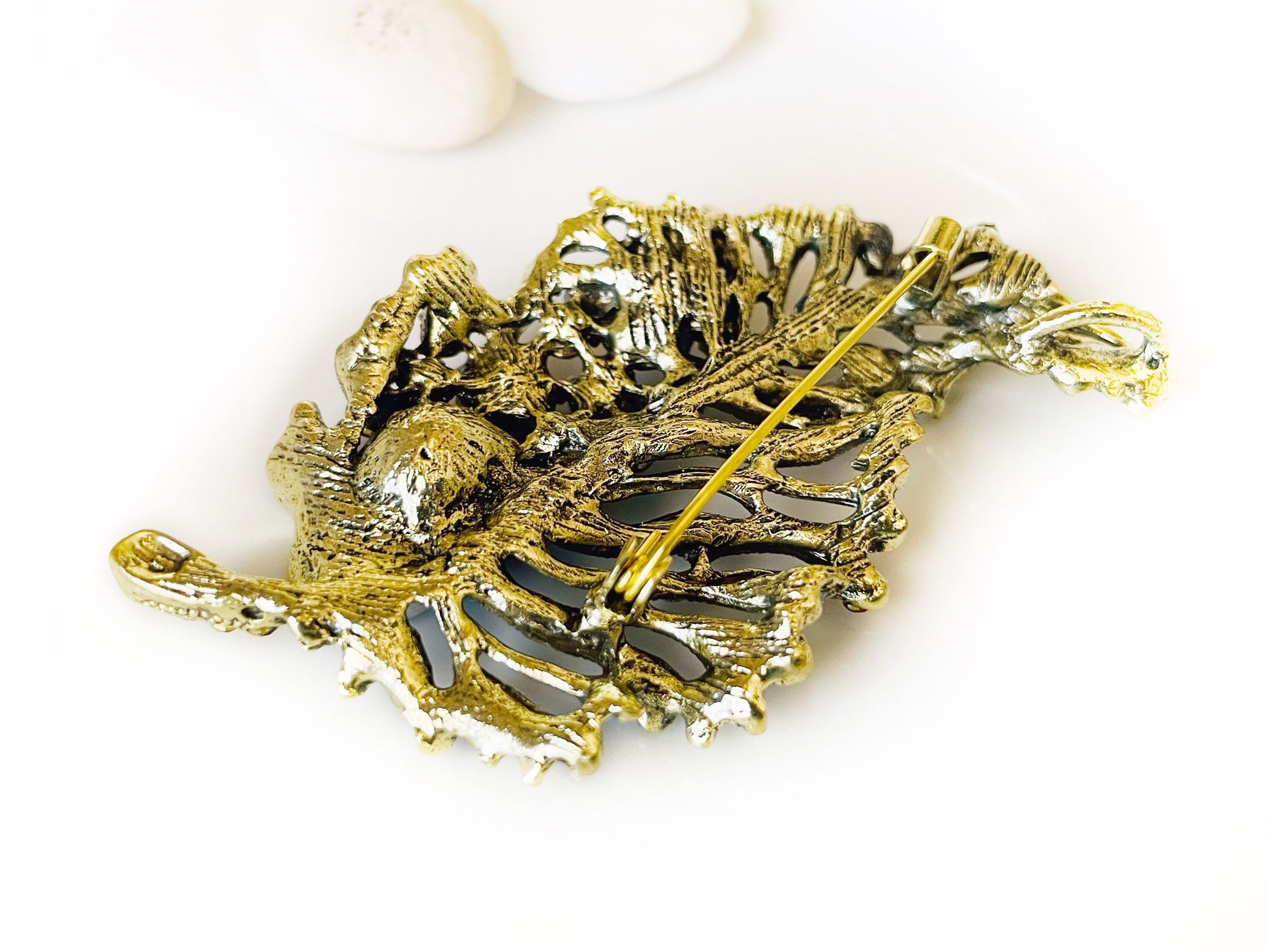 Large multicolored opal green, black, iridescent amethyst fancy crystals pave leaf shape brooch handcrafted in antique gold. It’s true a stunner that will instantly elevate your outfit for any occasion!