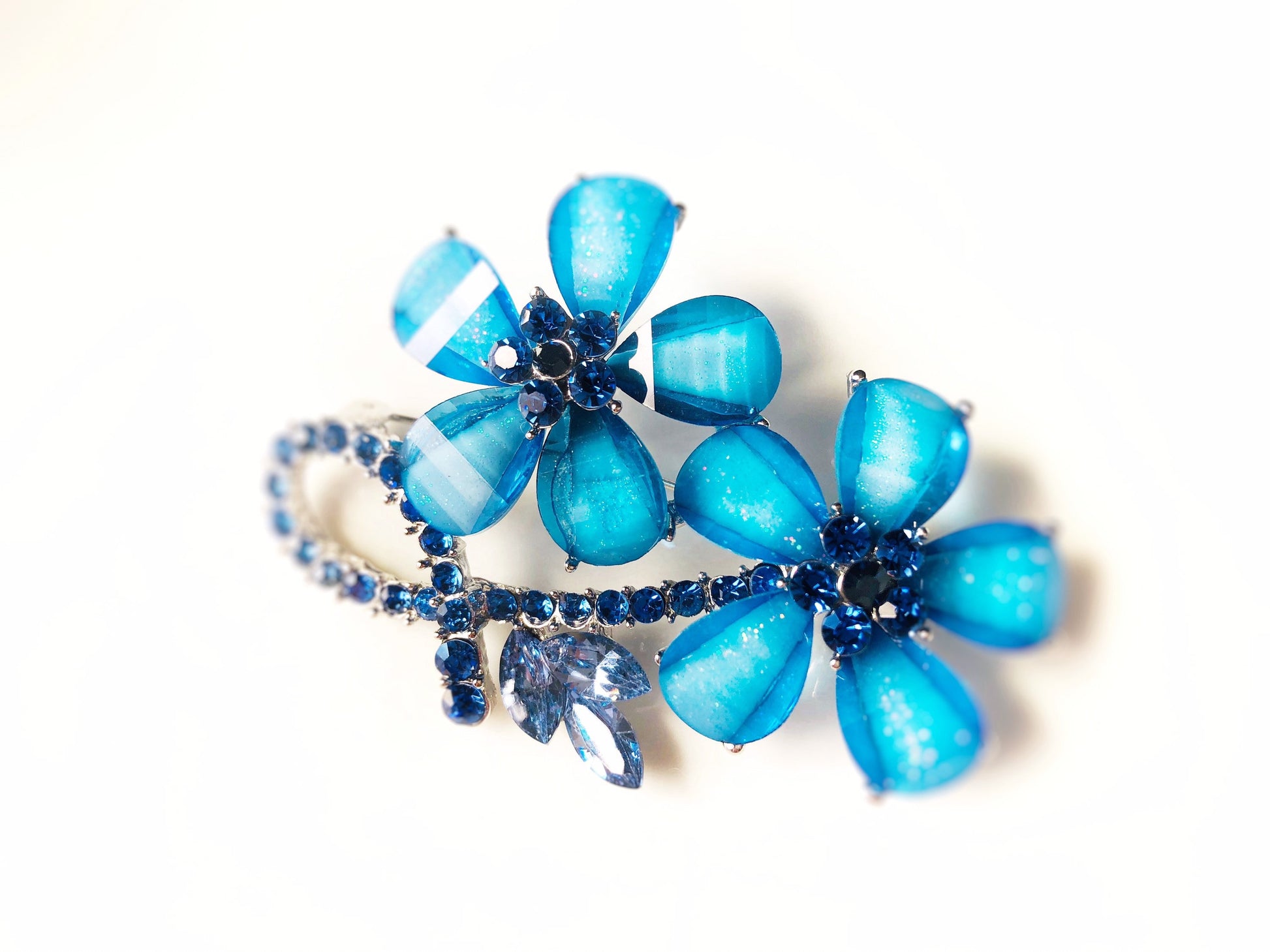 Large sky blue brooch pin, glitter lucite crystal flower brooch set in 18K white gold plated, gift for her, gift for mom