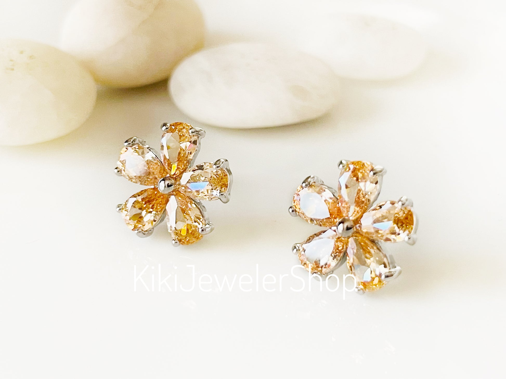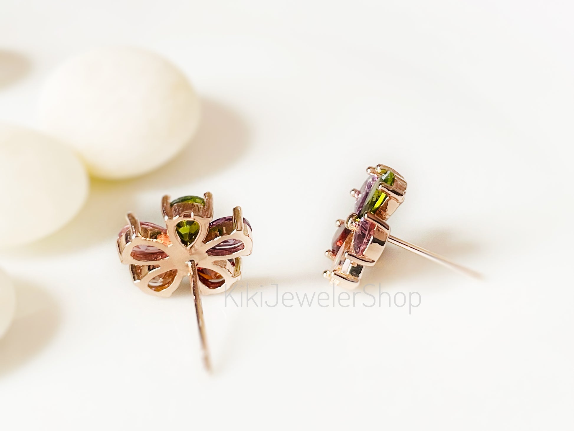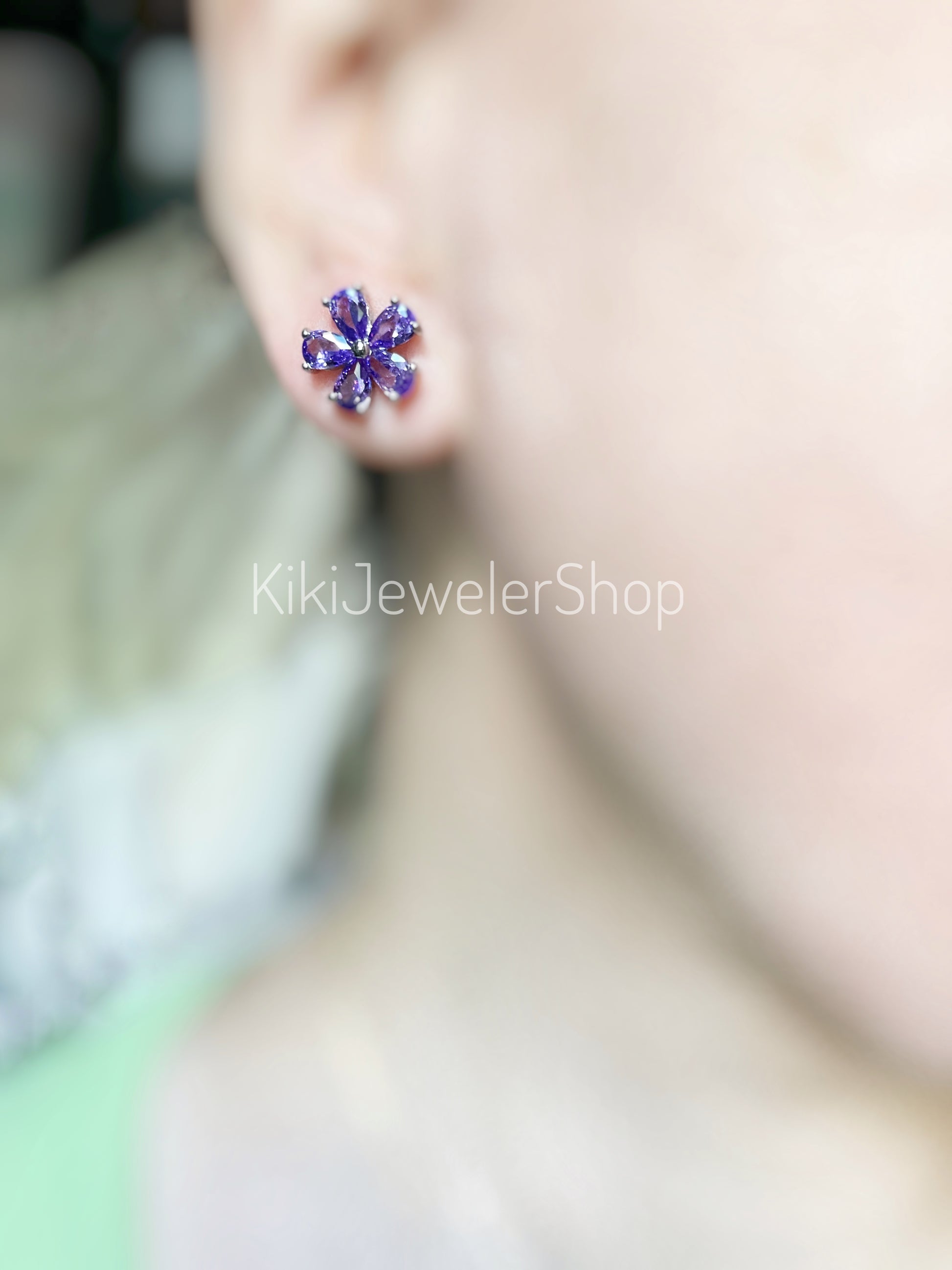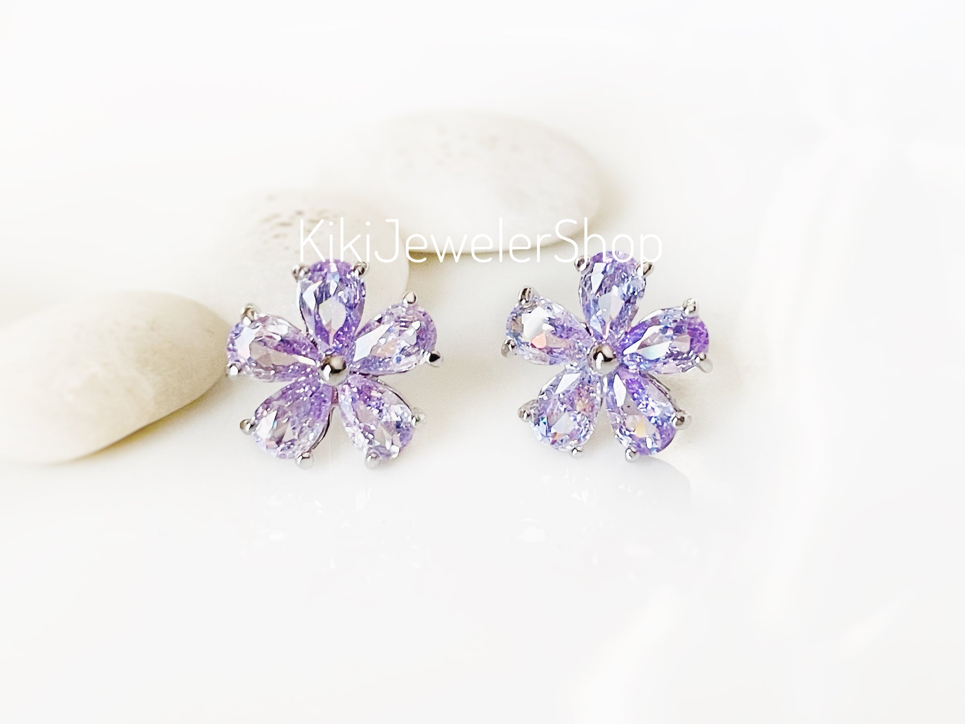 Light amethyst flower stud earrings studs, lilac purple gemstone flower studs
