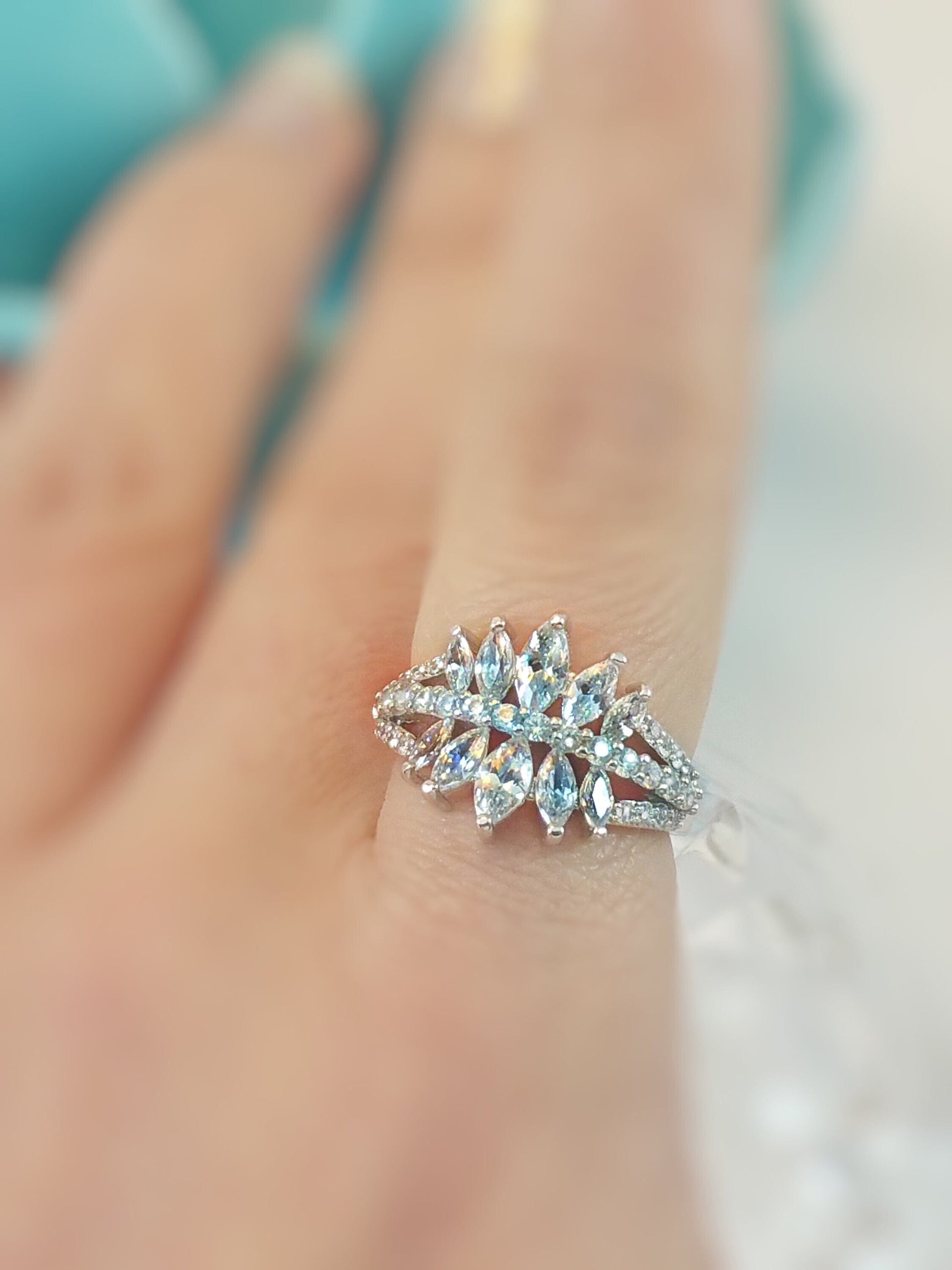 Marquise and round stones statement ring 18k white gold, gift for her, gift for mom