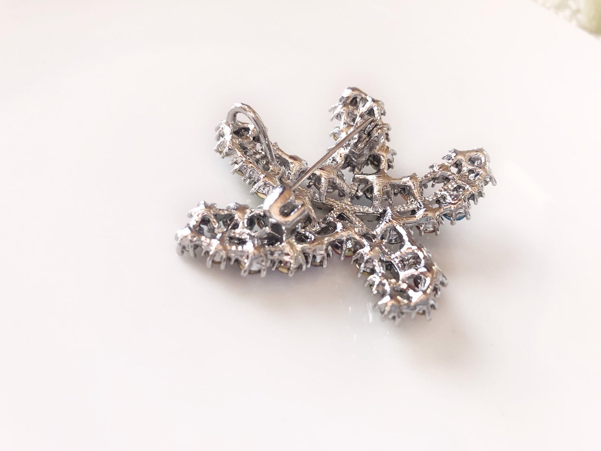 Multicolored crystal starfish brooch/pendant is designed to casted in 18K white gold plating. This super sparkly brooch will add tones of characters to your outfit.