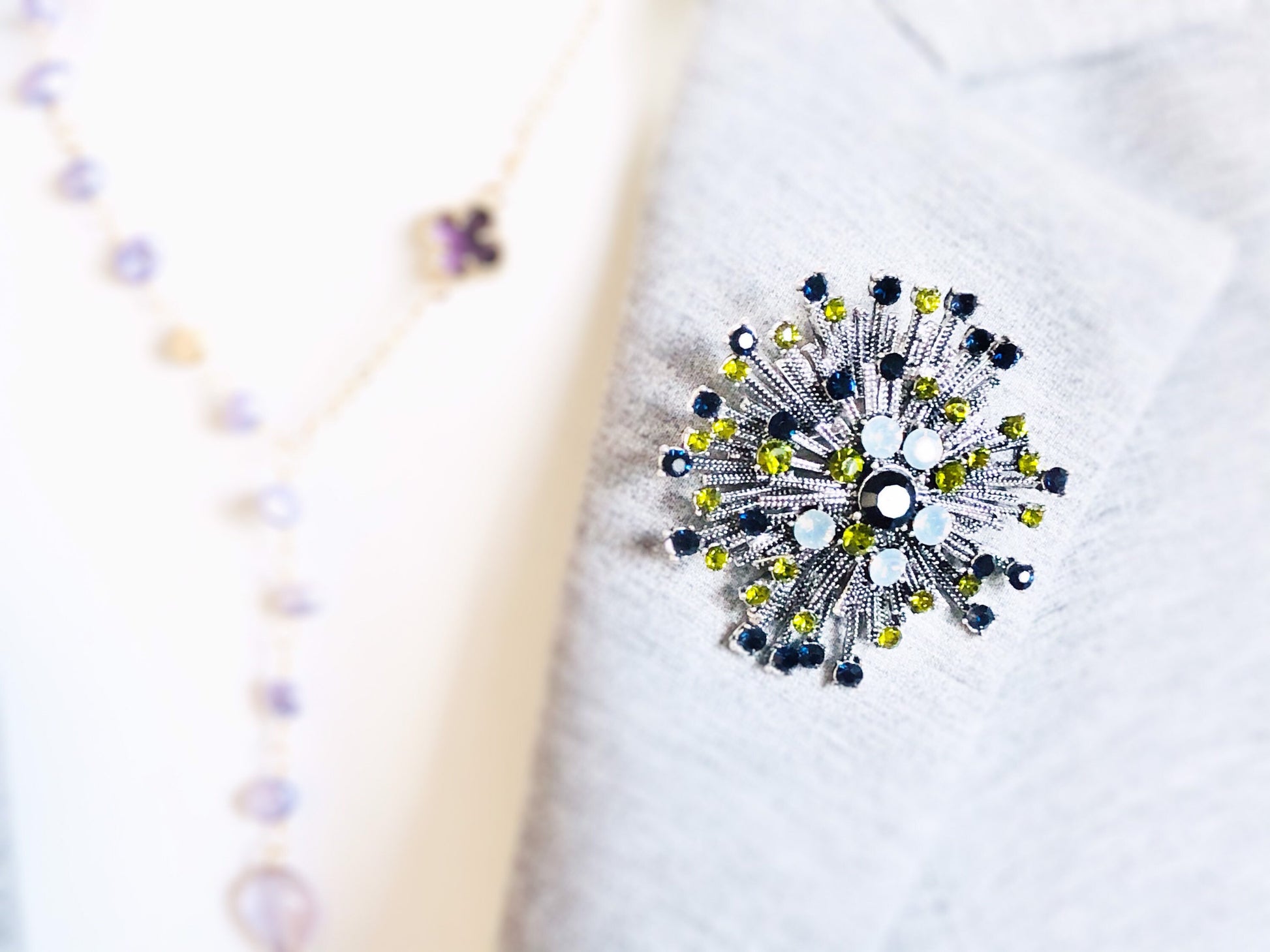 Multicolored crystal starburst brooch pin, statement crystal brooch pin, gift for mom, gift for her