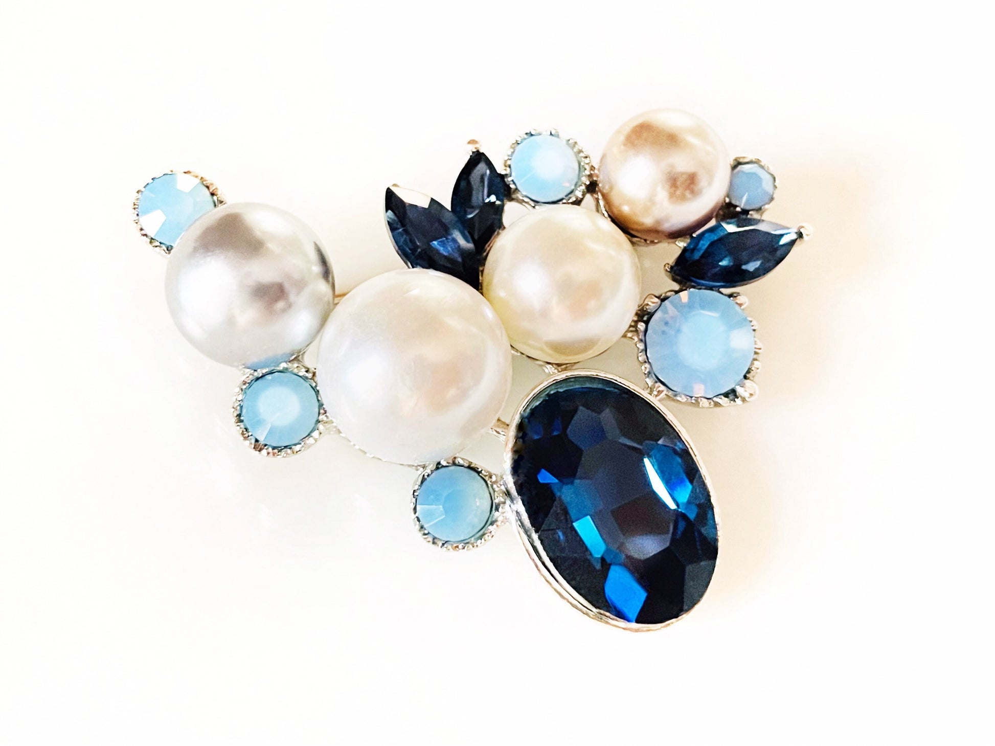 Multicolored pearl crystal brooch, large cluster pearl statement pin, red brooch gold, blue pearl brooch silver, gift for mom, gift for her