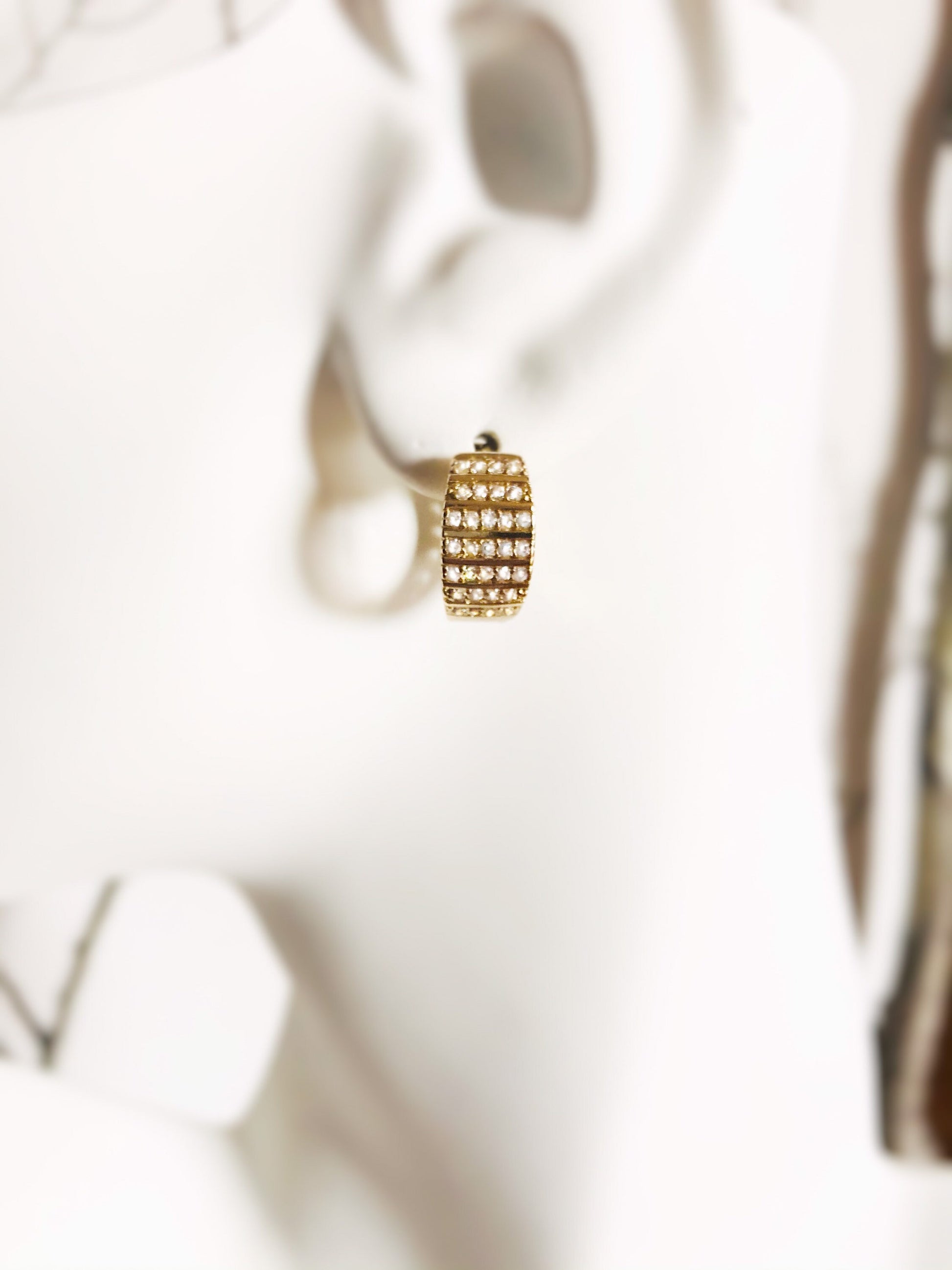 Pave white sapphire hoop earrings in 14K yellow gold, gift for her, gift for mom
