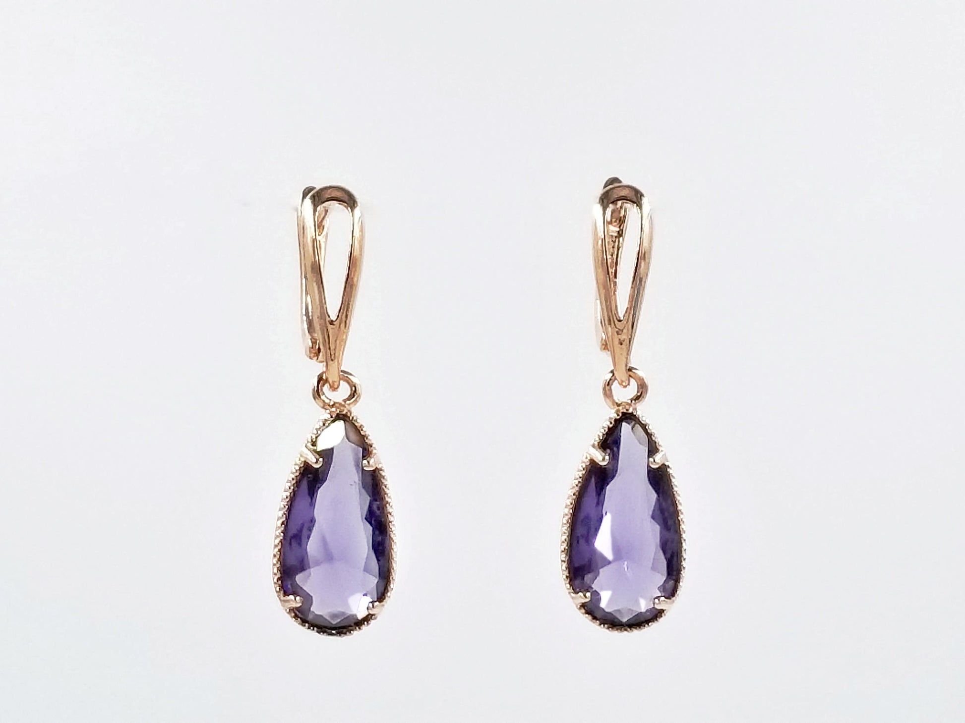 These stunning amethyst earrings are expertly crafted of 18K white gold/ 14K rose gold showcase sparkling pear-shaped 18x10mm created amethyst. These spectacular earrings add sophistication to your favorite ensembles. Wear them with causal and evening looks alike...