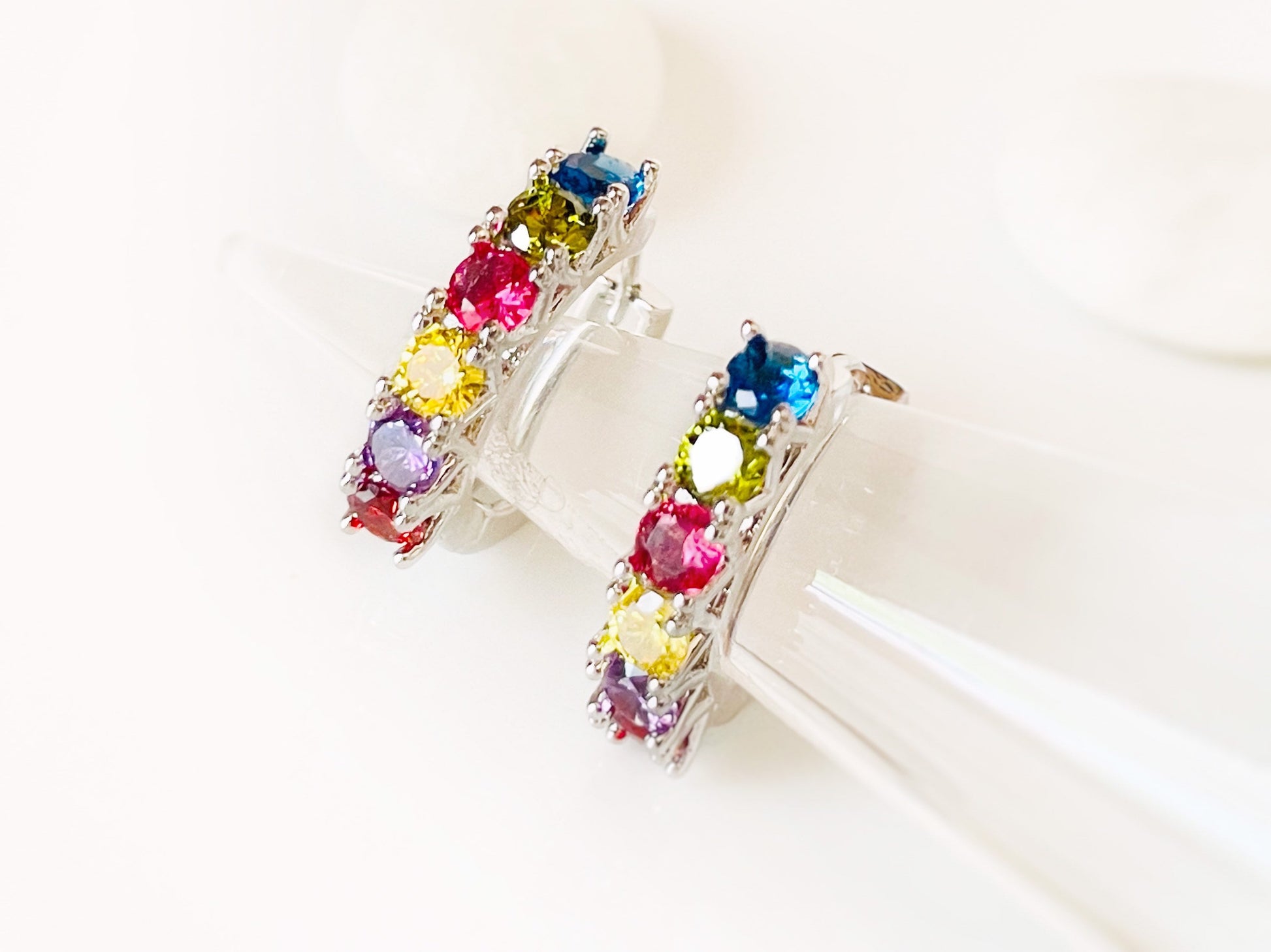 Rainbow Gemstone Hoop Earring in 18K white gold, silver Multicolor Gemstone Hoop earrings, Gift For Her, Gift For Mom