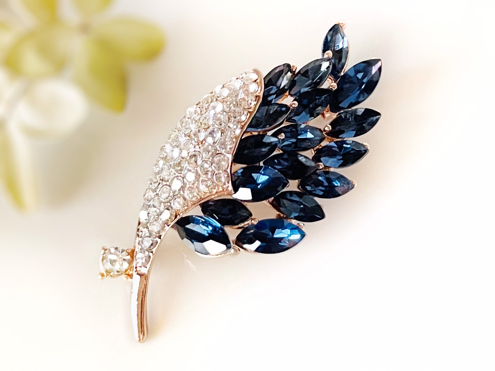 Sapphire bouquet brooch pin in 14K rose gold, dark blue crystal brooch, wedding bouquet brooch, gift for her, gift for mom