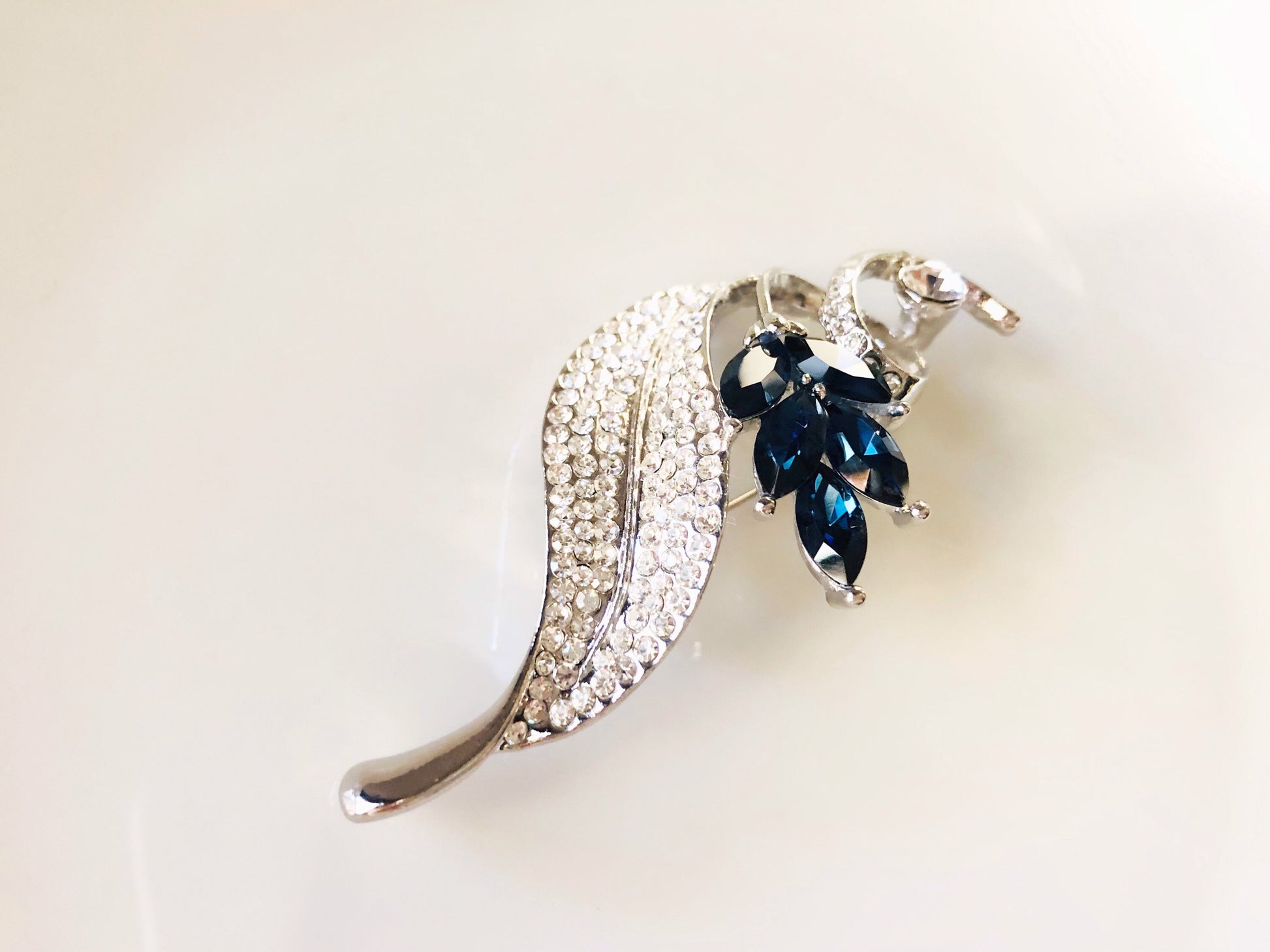 Sapphire crystal brooch in 18k white gold, wedding brooch, bridal brooch, navy brooch, gift for her, gift for mom