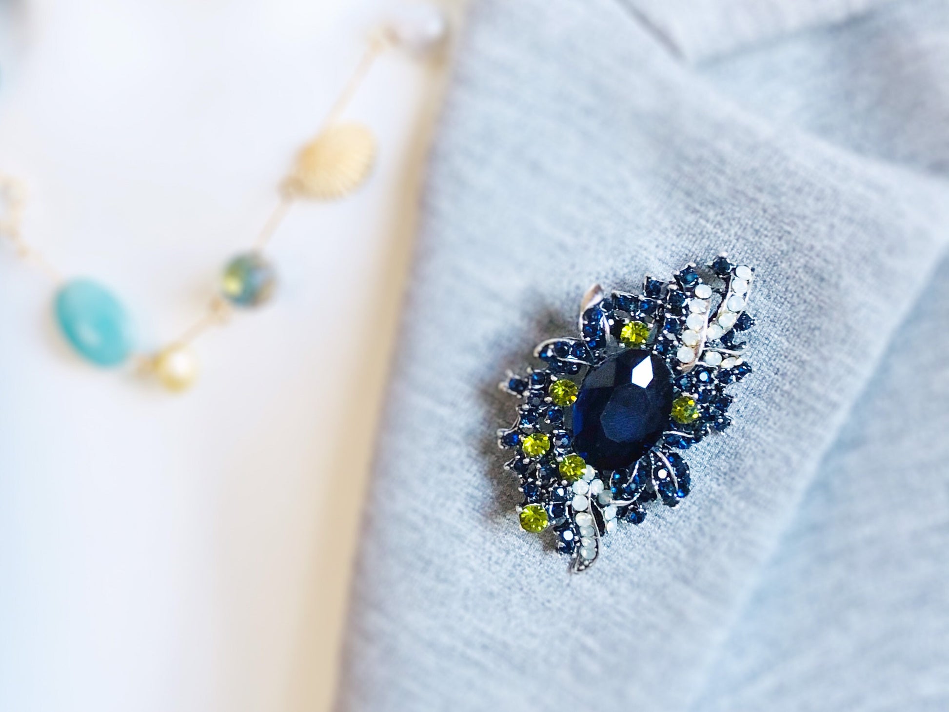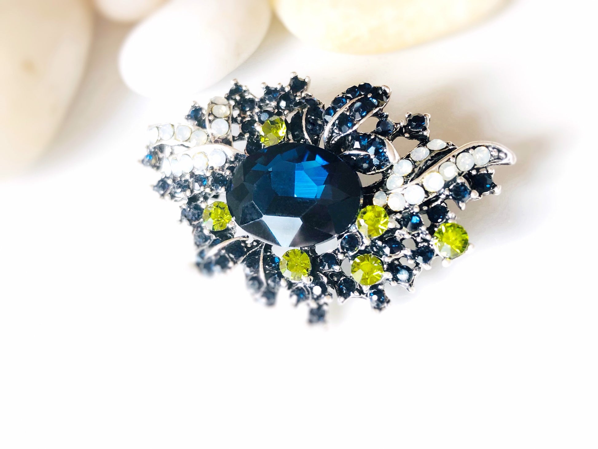 Sapphire crystal brooch pin antique silver, blue green multicolored crystal bouquet brooch, gift for her, gift for mom