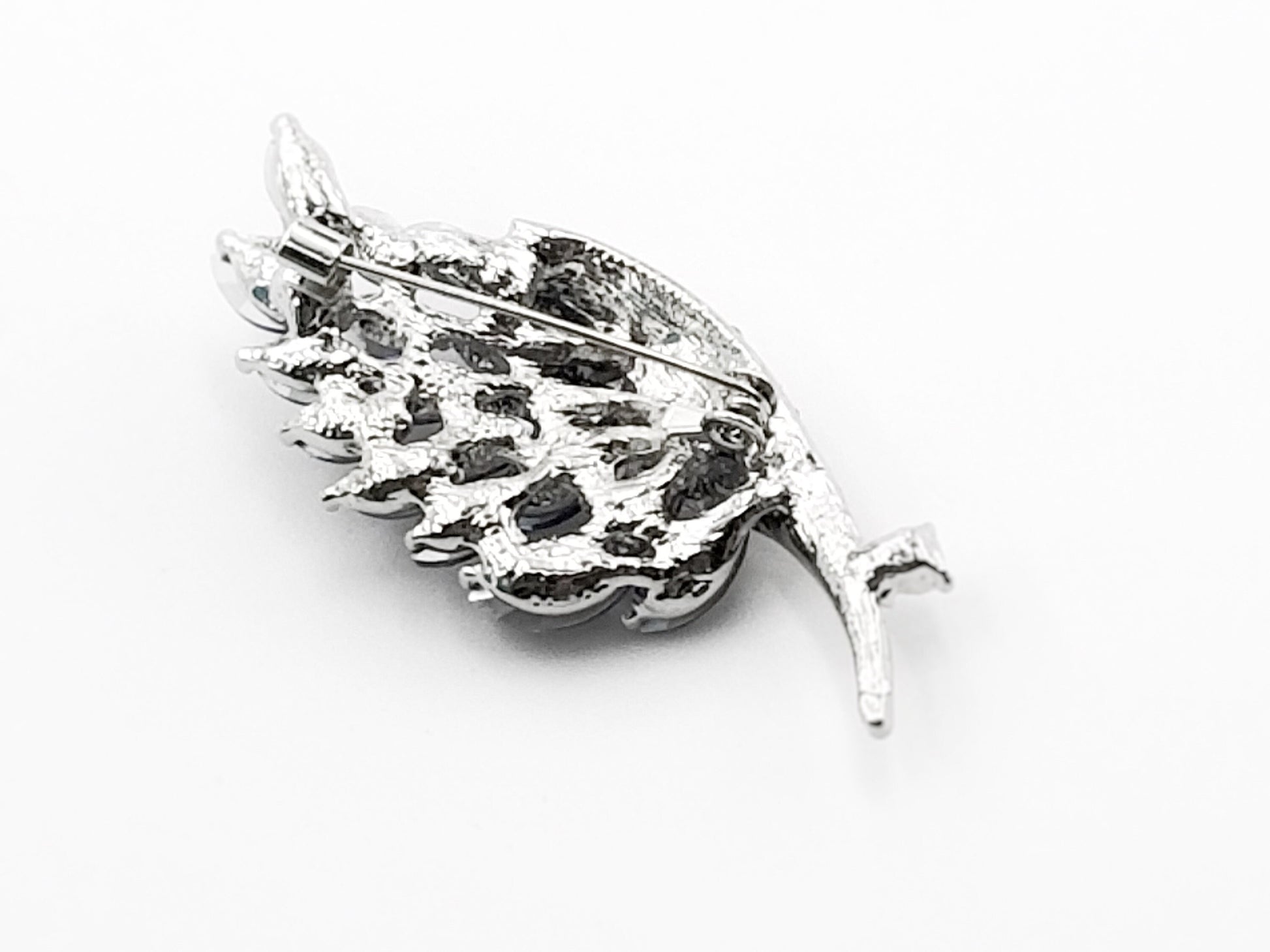 Sapphire crystal floral bouquet brooch, dark blue crystal silver wedding brooch, navy blue crystal pin, white gift for her, gift for mom