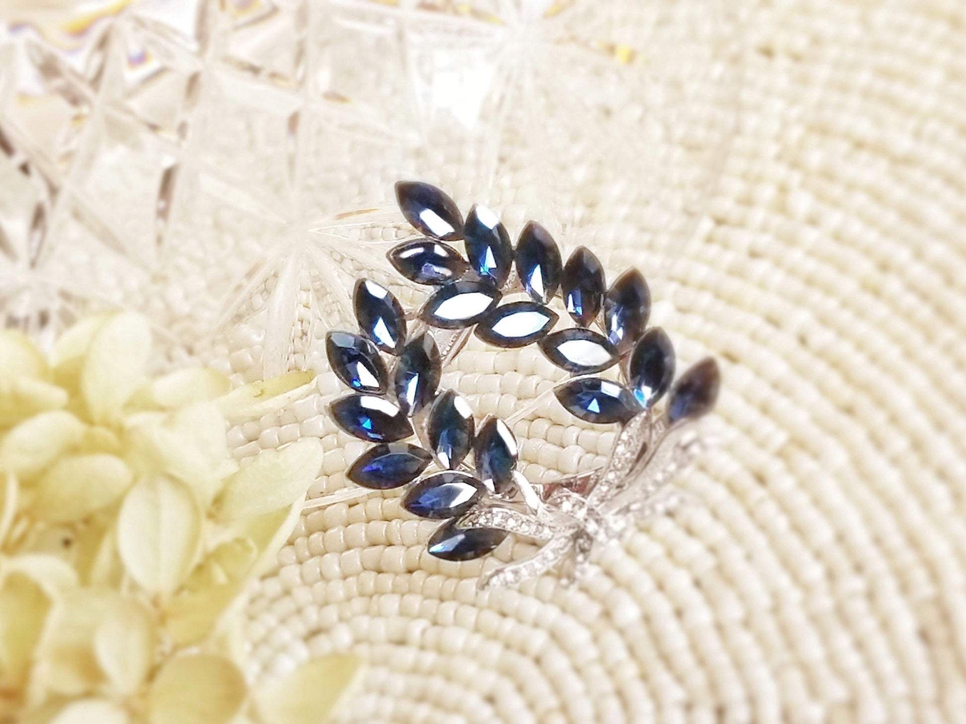 Sapphire crystal laural wreath brooch in 18k white gold, gift for her, gift for mom