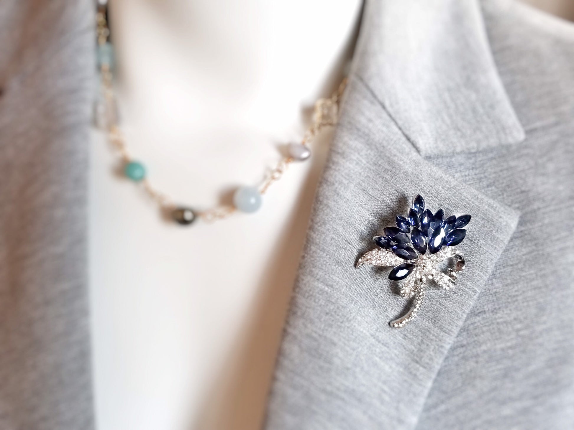 Sapphire floral bouquet brooch pin white gold, dark blue crystal wedding brooch, bridal bouquet pin, gift for her, gift for mom