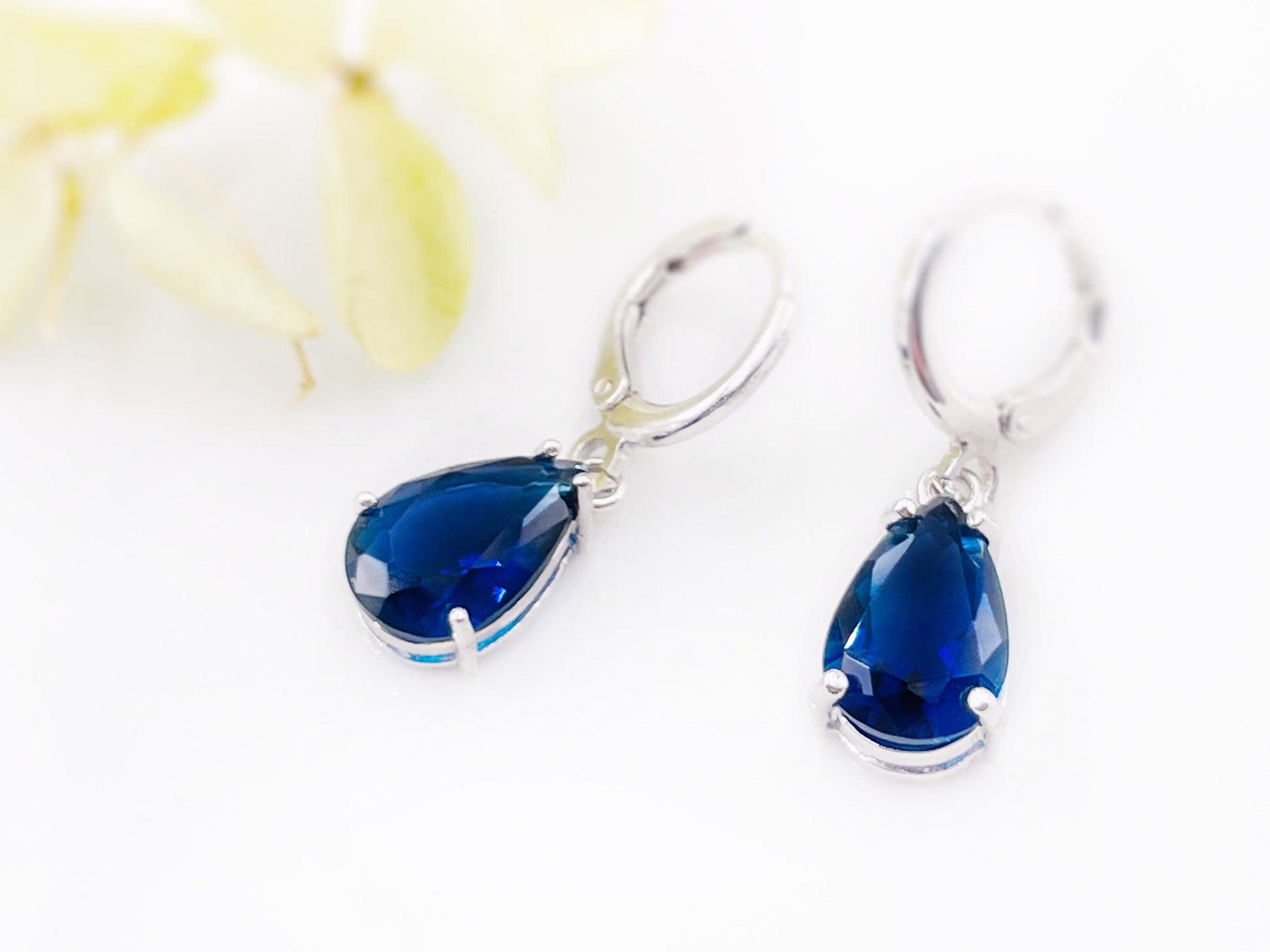 Sapphire teardrop dangle earrings, September birthstone, navy blue gemstone earrings, gift for her, gift for girl, bridesmaids gift