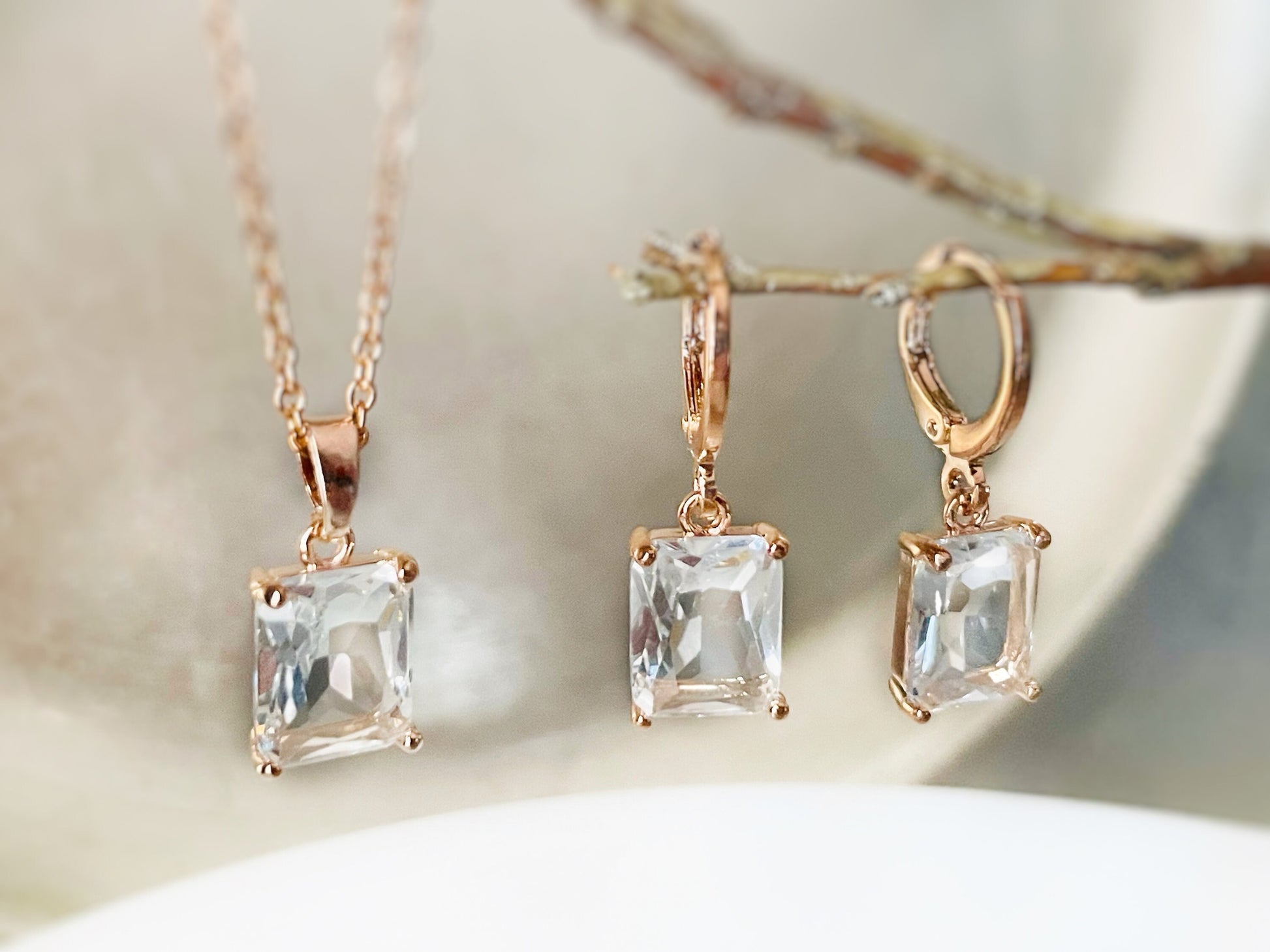 Small emerald cut gemstone 2pc jewelry set