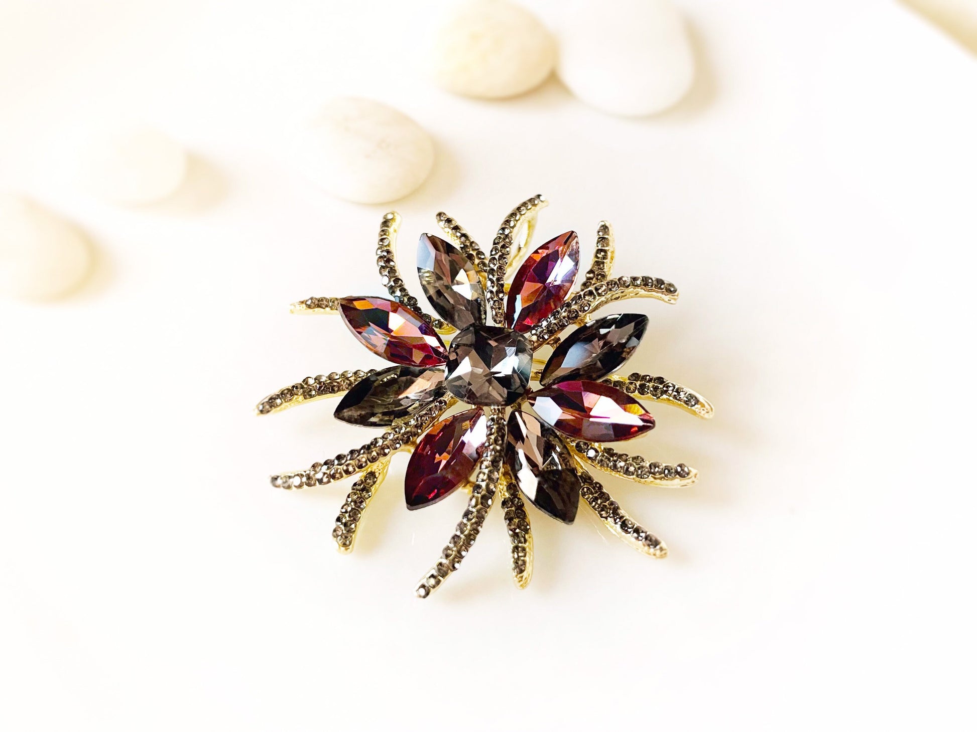 Starburst crystal brooch pendant, blue grey crystal statement brooch, large sapphire blue grey crystal brooch, gift for mom