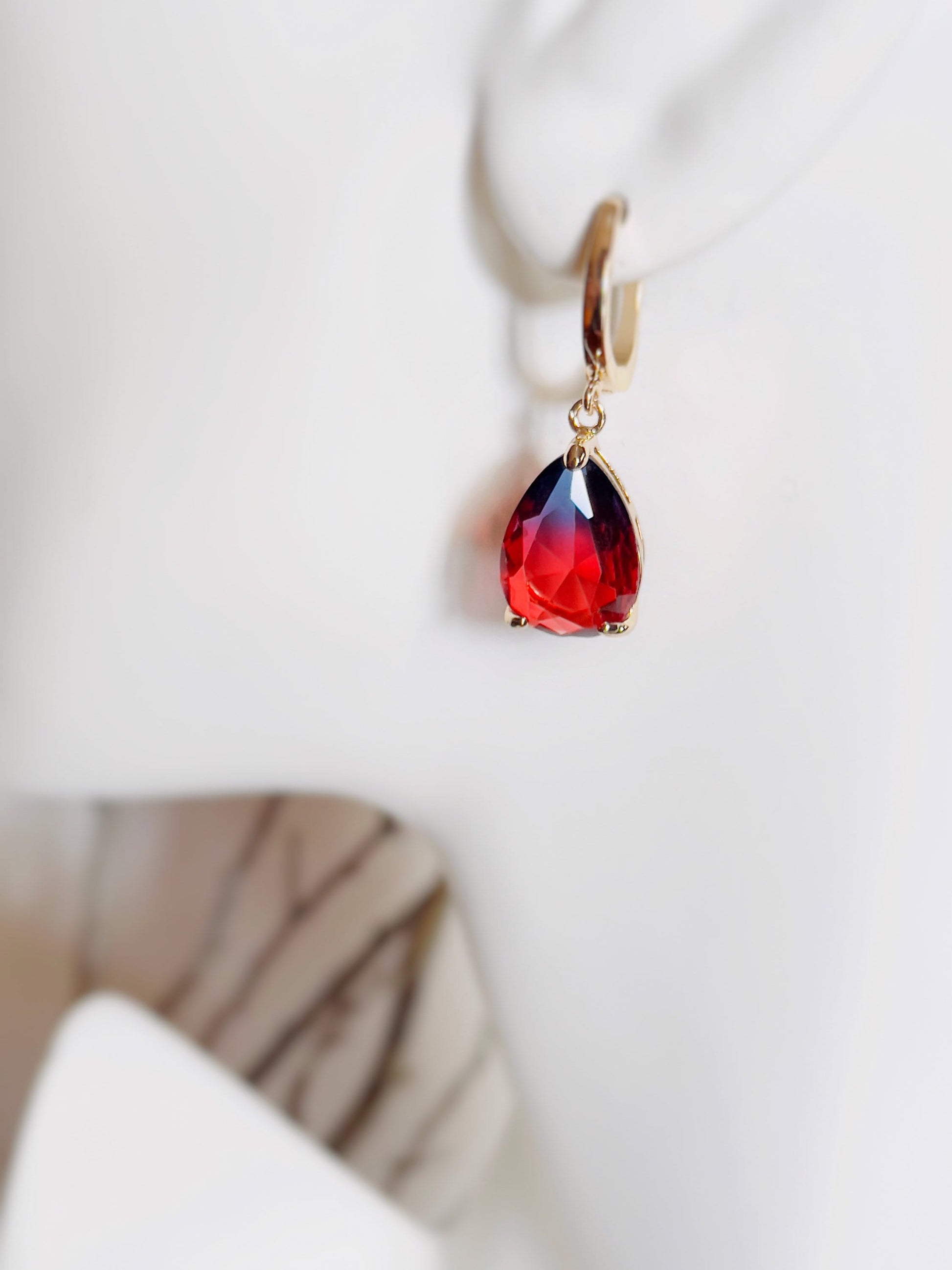 Bicolor imperial topaz teardrops dangle earrings crafted of 14K yellow gold over brass. These beautiful yellow and orange created gemstones will be the statement makers for any outfit. They are lead and nickel free.
