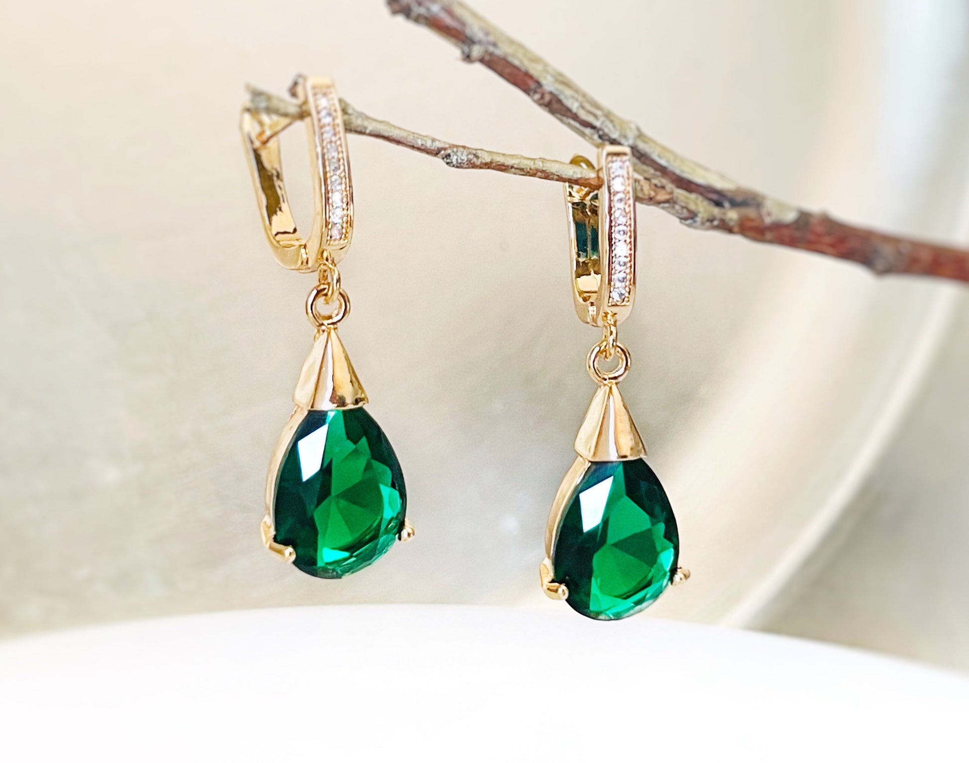 Teardrop emerald earrings, green gemstone drop earrings, bridesmaids earrings, gift for her, for mom, May birthstone