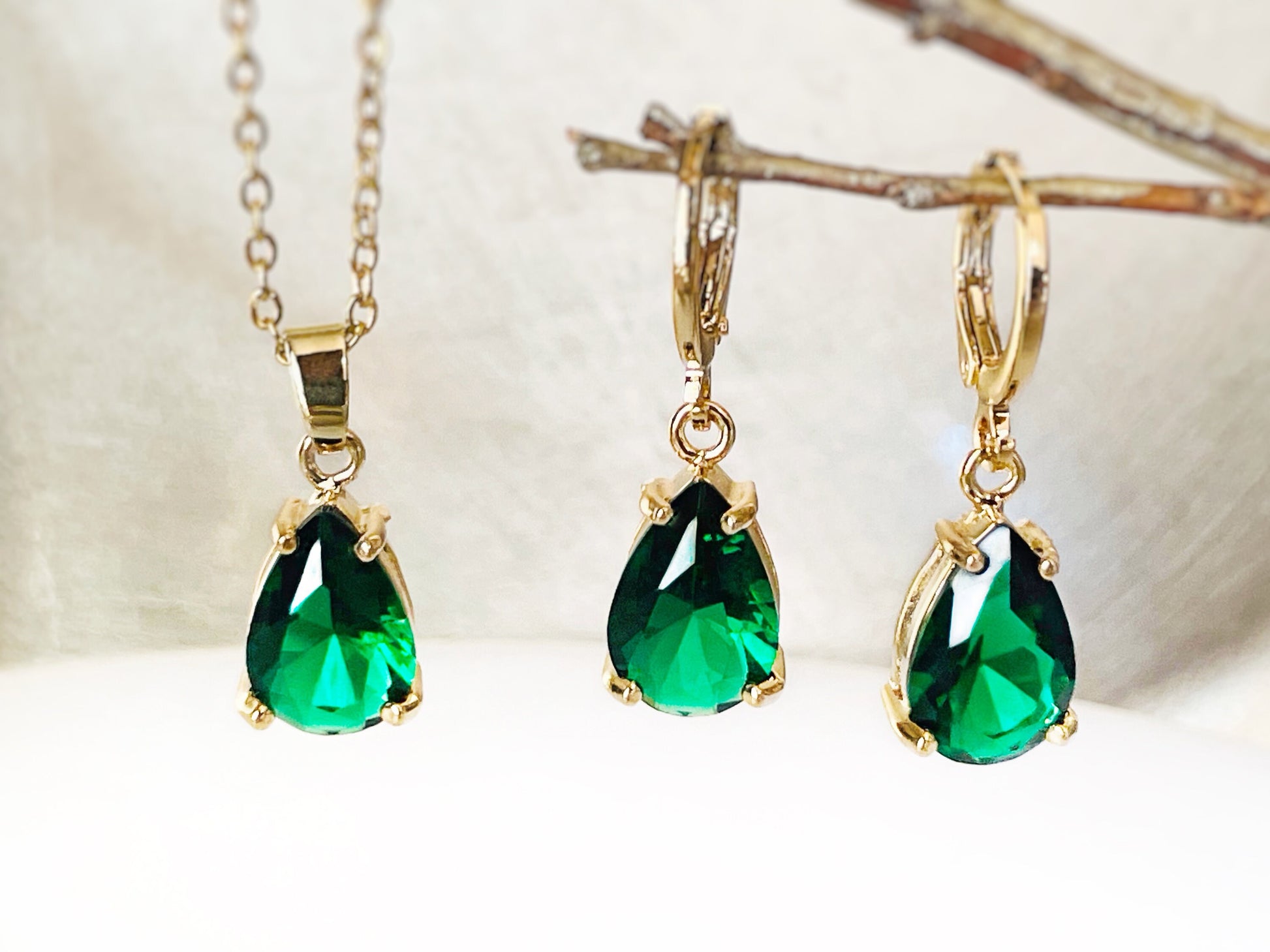 Teardrop gemstone 2pc jewelry set, dangle earring and necklace jewelry set, bridesmaids gift, gift for her, birthstone gift set