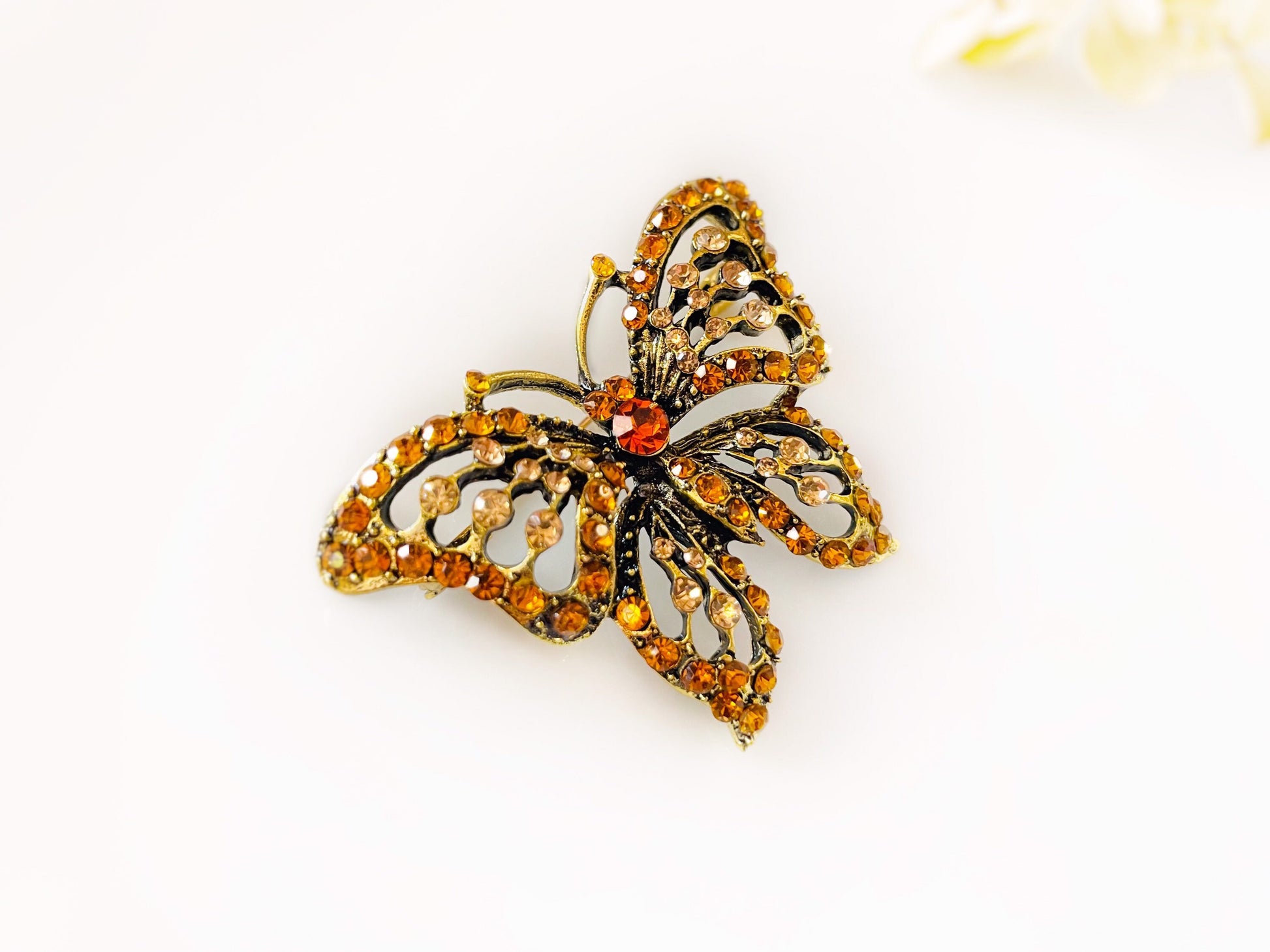 Topaz crystal Butterfly brooch antique gold, brown Crystal butterfly brooch pin, vintage inspired brooch, gift for mom